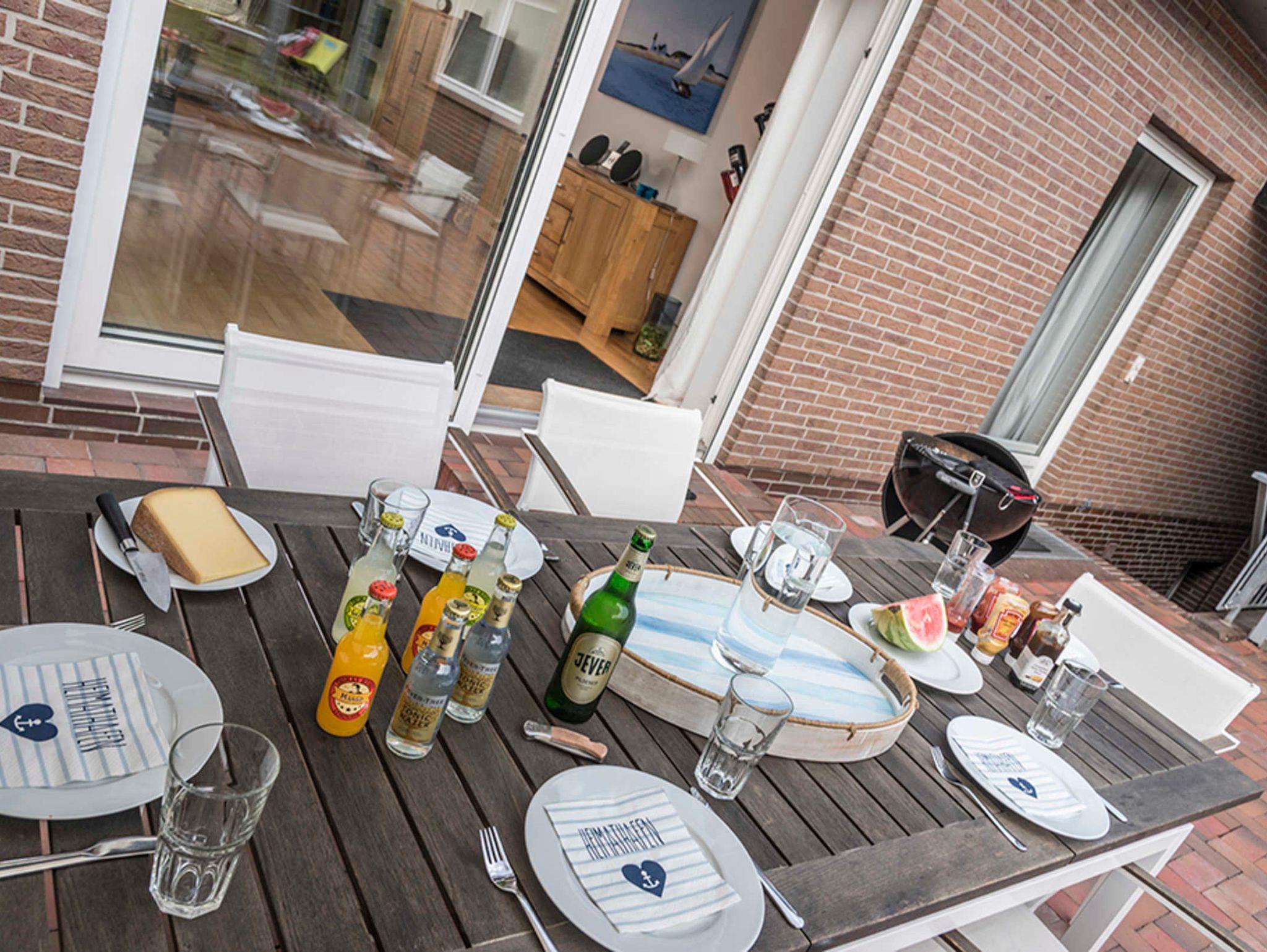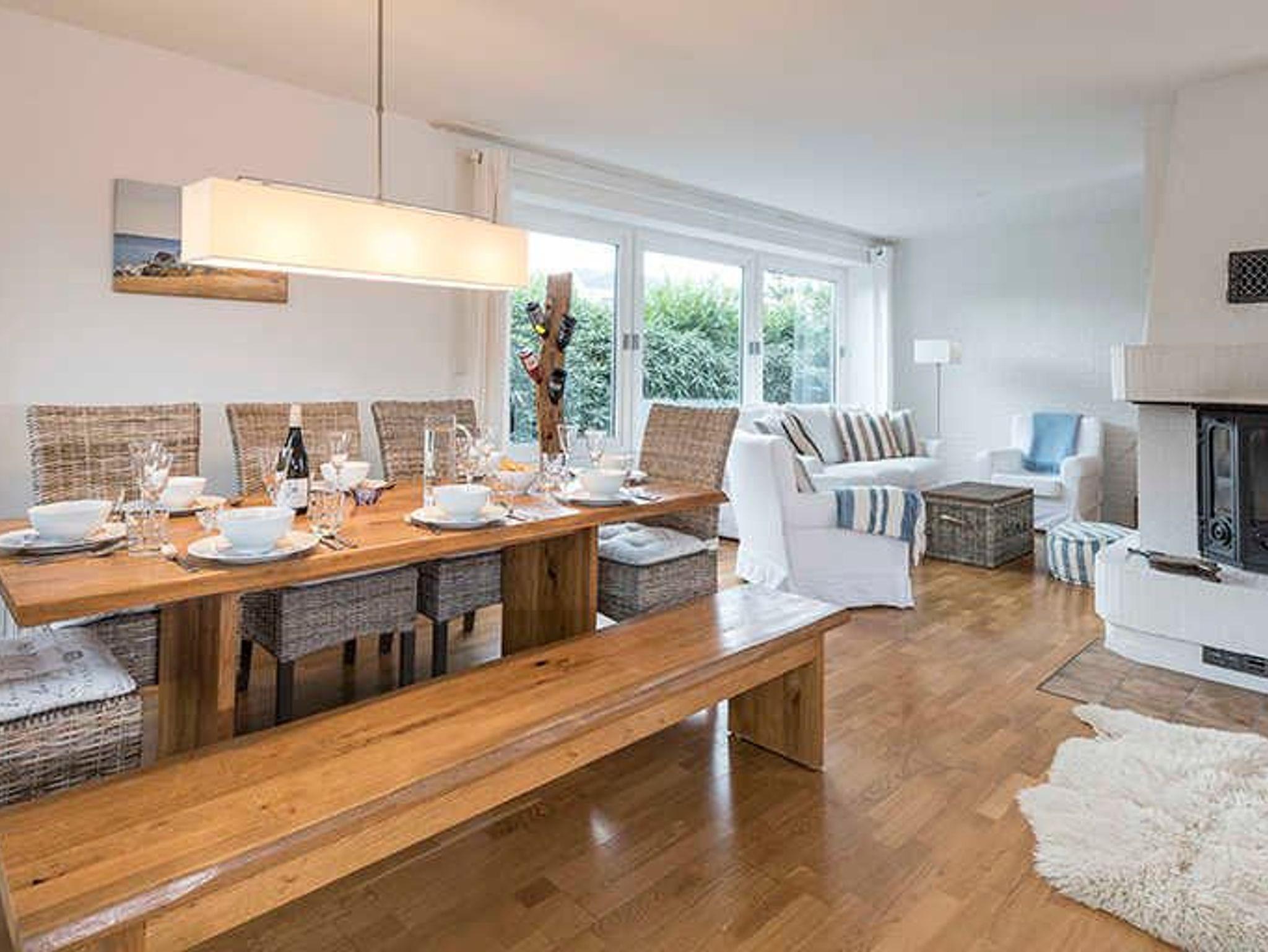 Im großen Wohnzimmer mit Kamin kann man sich treffen, Tee trinken mit Rhabarberkuchen vom Kurhaus oder zusammen essen am großen Tisch für 12 Personen. In der großen Küche mit Stehtisch lässt sich hervorragend zusammen kochen oder einfach schnacken. Auf der Terrasse, im Garten oder in der sog. Lounge geht am gemeinsamen Grillen fast kein Weg vorbei. Die Kinder können jederzeit raus in den großen, eingewachsenen Garten.