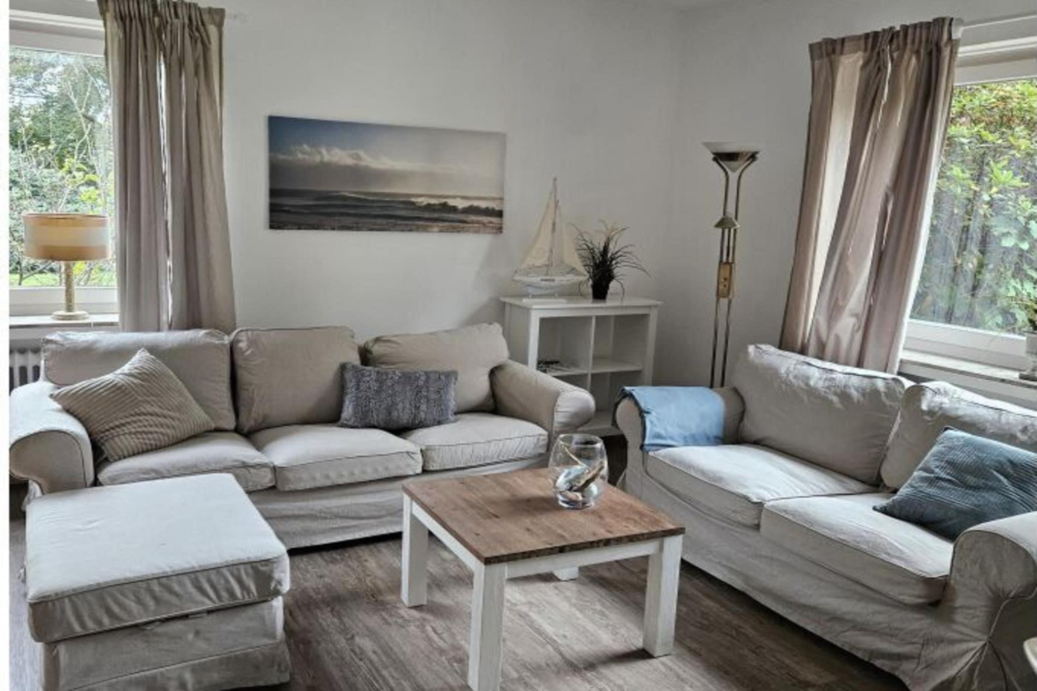 Bis zu 5 Personen finden hier Natur pur, Ruhe und Erholung. Auf 95qm ist 2020 eine sonnige Ferienwohnung entstanden, die den Eindruck, den der herrliche Nordseestrand und die herrliche Landschaft hinterlassen, aufnimmt und widerspiegelt. Die komfortable Sitzecke im großzügigen Wohnbereich lädt zum Entspannen ein. In der komplett ausgestatteten Küche können alle zusammen kochen.