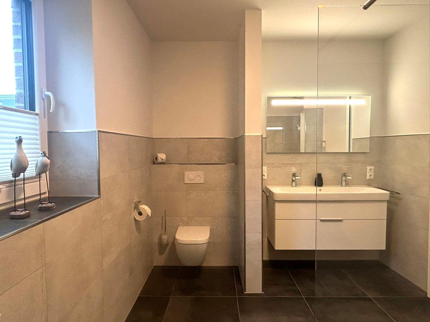 Alle 3 Badezimmer verfügen über bodengleiche Duschen. Der private Saunabereich (verfügbar ab 05/2026) ergänzt die Ausstattung auf angenehme Weise und bietet Ihnen nach einem Tag an der Nordsee eine wohltuende Rückzugsmöglichkeit.