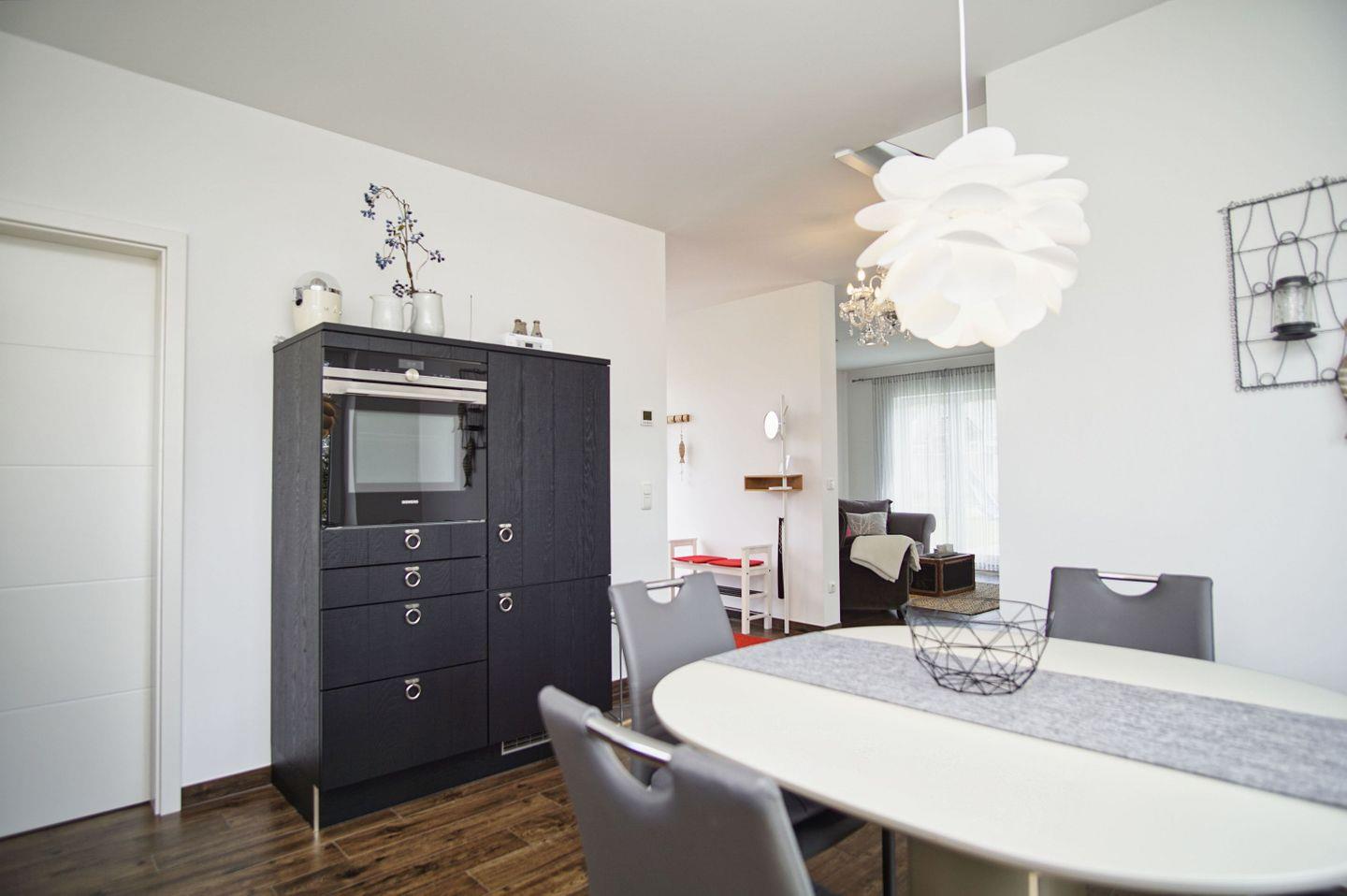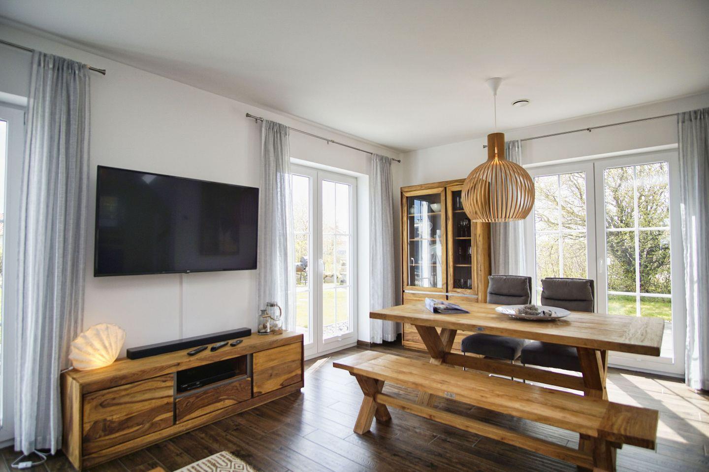 WOHNEN // Wohnraum mit Essbereich, Sitzgarnitur mit bequemer Couch, Kaminofen, Flachbild-TV, CD + DVD-Player, Bose-Soundanlage ++