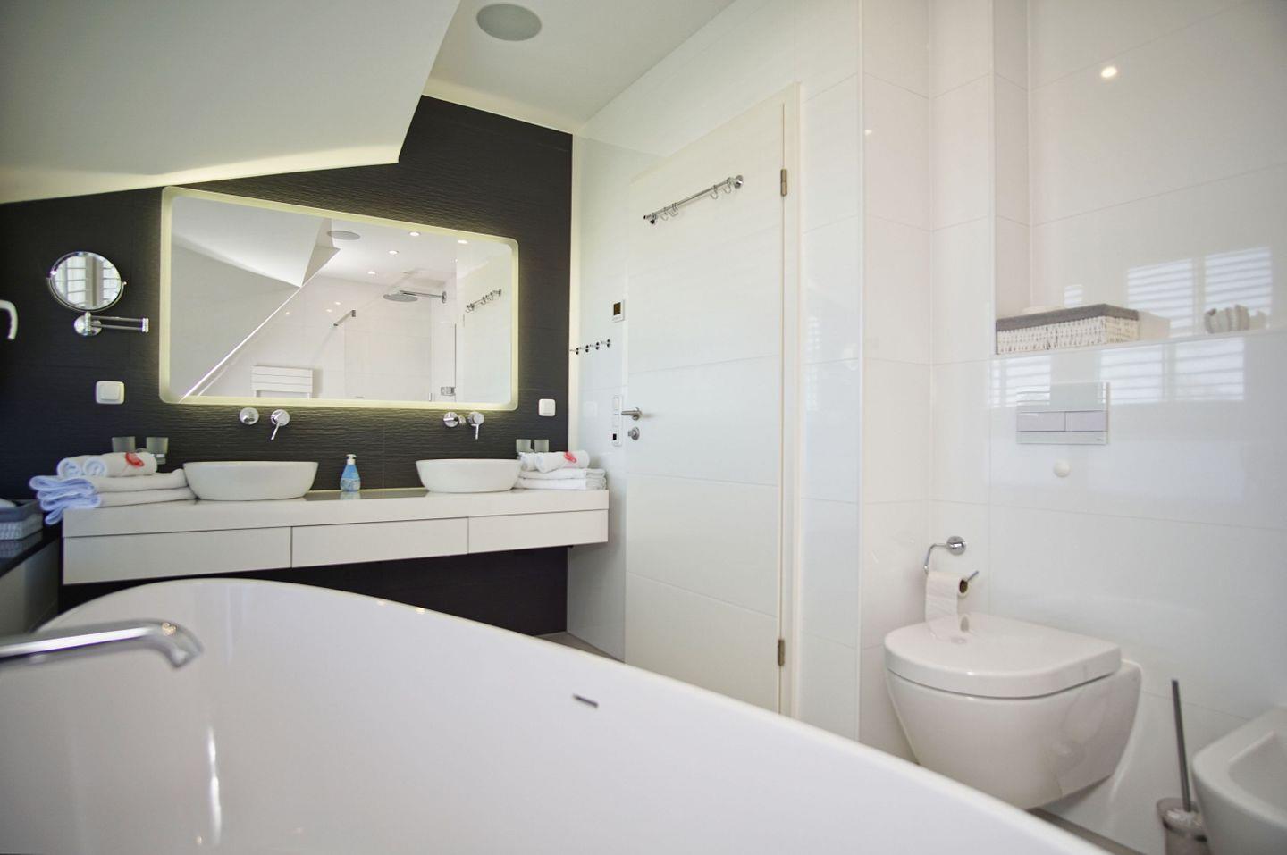 BAD // Tageslichtbad im OG mit Sauna, Dusche, Badewanne, Doppelwaschbecken und WC, Gäste-WC im EG ++