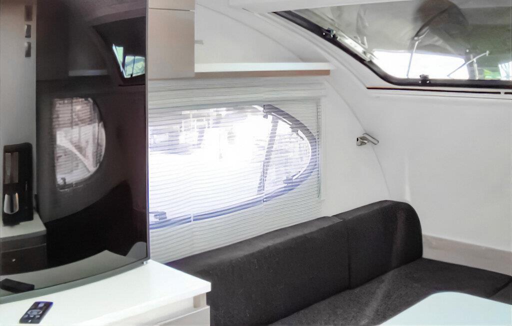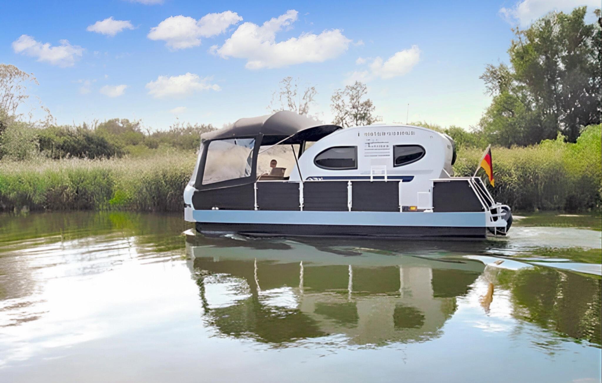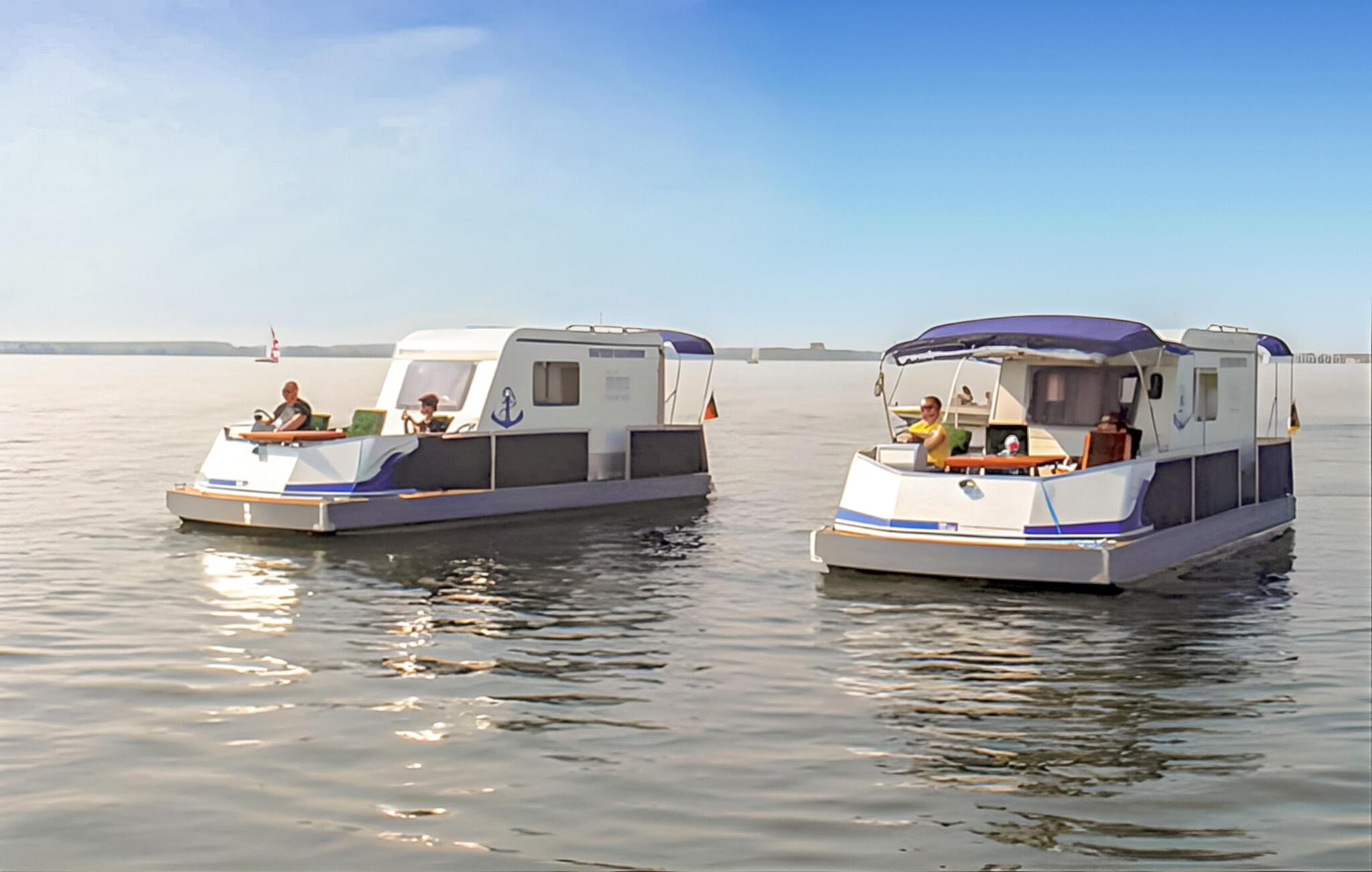 Der Wassercamper ist einfach und praktisch eingerichtet. Sie ist ausgestattet mit: Miniküche, 2 Gasbrennern, Kühlschrank, Kaffeemaschine, Essecke, Radio, Gasheizung und Gartenmöbeln. Im Wohnwagen gibt es 2 feste Schlafplätze in einer Kabine und einen zusätzlichen Kinderschlafplatz im Zelt auf dem Vordeck. Idealerweise ist der Kofferraum für 2 Personen geeignet. Thermomatten für die Zeltnutzung werden vom Eigentümer zur Verfügung gestellt, Schlafsäcke müssen mitgebracht werden.Hausboot / Typ 2: (15 PS, 6 m², max. 3 Personen, davon 1 Kind), Maße 9,30 x 3,60 m (gesamt), 3,70 x 2,10 m (Wohnstruktur). Ausstattung mit: Schlafkabine, Nasszelle, Toilette, Dusche, Wassertank (40 l + 25 l Reserve). Im Gesamtpreis sind enthalten: Charterschein, Versicherung, Endreinigung, Schwimmwesten, Badeplattform, Elektrostarter, GPS, Nachtbeleuchtung, Schiffskarten, Landanschlusskabel und Parkplatz. Der Benzinverbrauch wird vor Ort abgerechnet. Nach einer ausführlichen Einweisung in die Handhabung des Bootes und einer Probefahrt erhalten Sie eine Charterlizenz als Berechtigung zum Führen des Bootes. Erleben Sie einen außergewöhnlichen Urlaub mit einem Watercamper! Hier können Sie sich im wahrsten Sinne des Wortes treiben lassen – auf dem Kummerower See und der Peene. Erkunden Sie diese idyllische Wasserlandschaft auf einzigartige Weise, bleiben Sie dort, wo Sie möchten und genießen Sie Ihre völlige Unabhängigkeit. Bei den Watercampern handelt es sich um eine neuartige Konstruktion bestehend aus einem Katamaran-Unterbau und einem Wohnwagen. Im großzügigen Bugbereich finden Sie ausreichend Platz, um in der Sonne zu frühstücken. Diese Plattform ist durch ein umlaufendes Geländer geschützt, sodass auch die Sicherheit für unsere kleinen Kapitäne gewährleistet ist. Rundherum gibt es einen Gehweg mit einem stabilen Handlauf. Extra große Vorratstanks und Hochleistungsbatterien geben Ihnen die Möglichkeit, mehrere Tage ohne Landanschluss zu verbringen und die Mecklenburger Seen und ihre einzigartige Natur hautnah zu erleben.