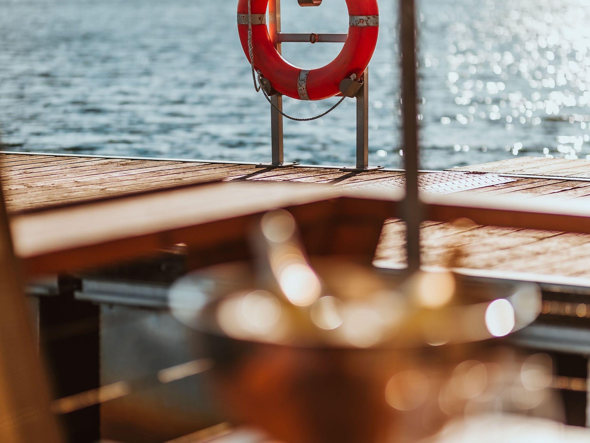 Ein externes Saunafloss an der Steganlage kann kostenpflichtig und nach Verfügbarkeit gebucht werden.