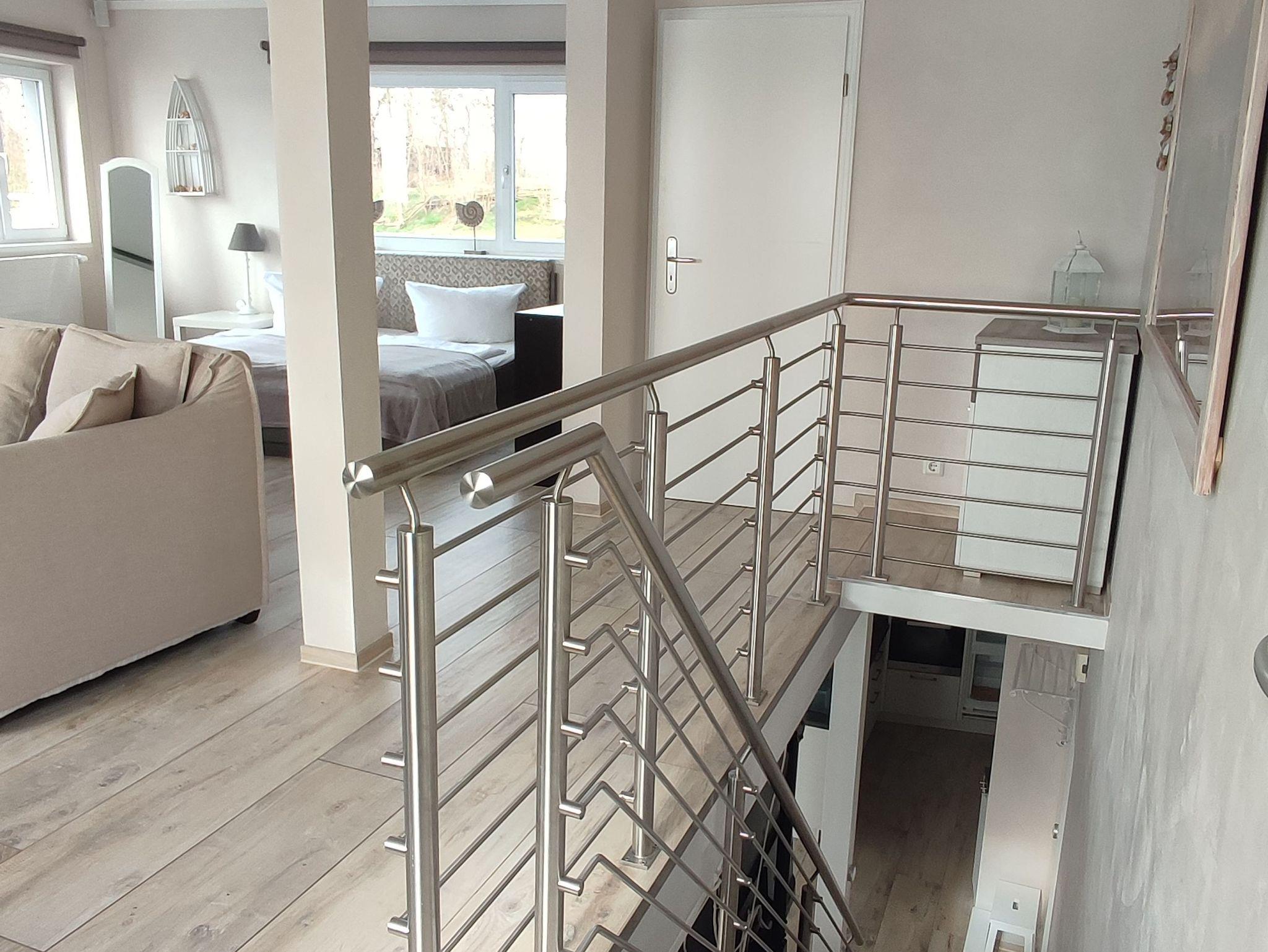Es verbindet den Charme eines Hausbootes mit neuesten technischen Anforderungen und Feinheiten im modernen Design. Mit seiner exklusiven Ausstattung entspricht es den gehobeneren Ansprüchen an ein großzügiges Ferienhaus und bietet viel Platz für einen unvergesslichen Familienurlaub bis 6 Personen auf 2 Etagen. Wohn-/Schlafräume zwischen Erd- und Obergeschoss sind nur durch eine offene Treppe (ohne Tür) voneinander getrennt.