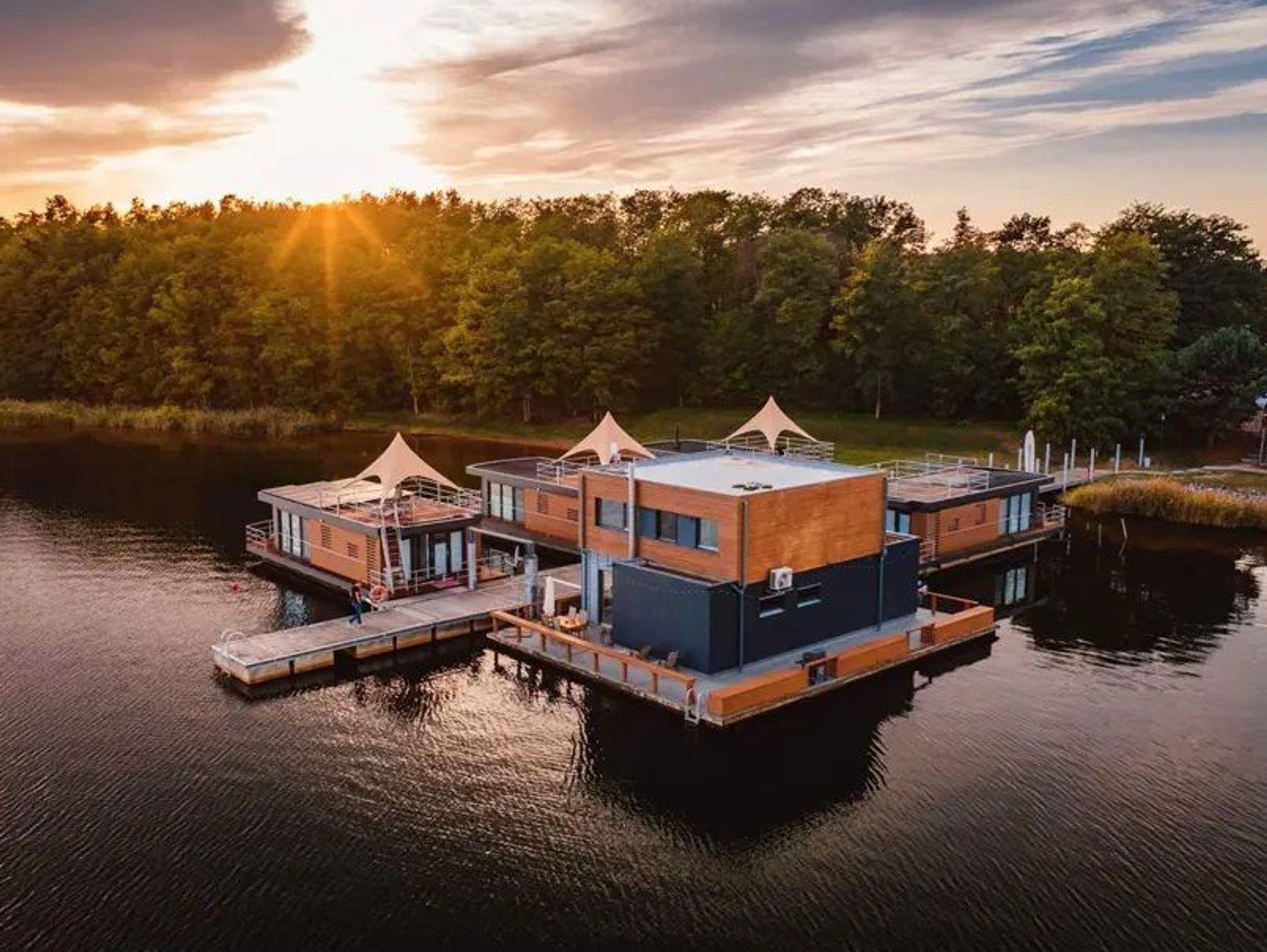 Schwimmende Ferienhäuser auf dem Gräbendorfer See Urlaub auf dem Wasser in der Spreewaldregion