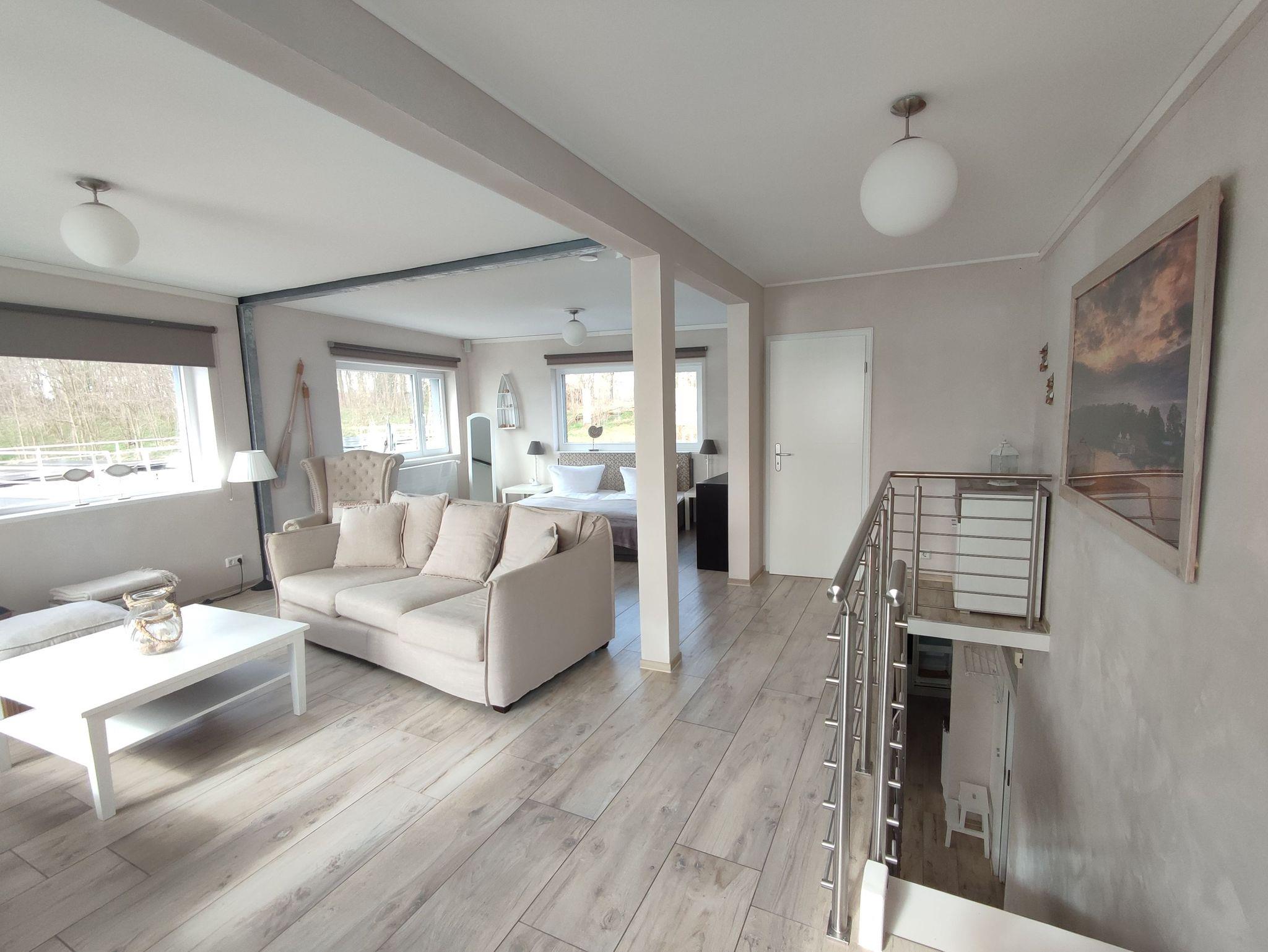 Die Möwe1 ist unser größtes schwimmendes Ferienhaus mit 2 Etagen und offenen Räumlichkeiten. Gelegen am Kopfliegeplatz (siehe Lageplan) am kleinen Steg Die Möwen.