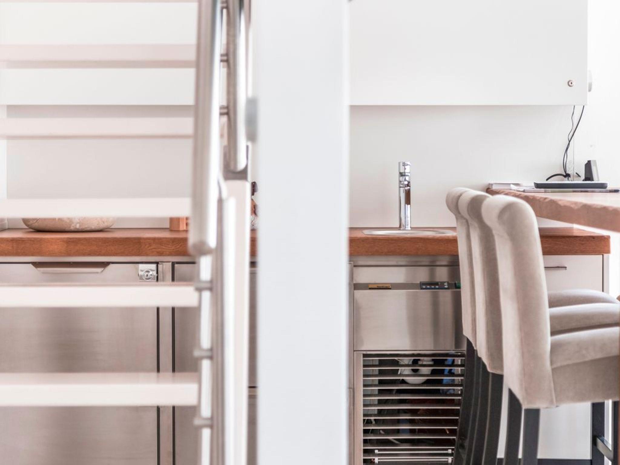 Die 116 m² Nutzfläche mit einer modernen Heizungs-/Klima-Technik sowie einem Pellet-Kamin ausgestattet ist an kalten und heißen Tagen immer angenehm. Viel schöner ist es jedoch, Sonne, Wasser und leichten Wind auf der Umlauffläche von ca. 45 m² zu genießen. Die Möwe1 verfügen über ein hochwertiges, gefliestes Badezimmer mit WC, Waschtisch und großer Badewanne, ein Doppelbett und einen Schlafsofa im Obergeschoss sowie ein separates Bad mit WC, Waschtisch und begehbarer Dusche und ein Doppelbett im Erdgeschoss. Die hochwertig eingerichtete Profi-Küche und die exklusive Multimedia-Ausstattung mit mehreren großen Ultra-HD Displays und Sound-System der Oberklasse lassen keine Wünsche offen. Ein High-Speed Internetzugang mit WLAN-Zugang steht selbstverständlich ohne Einschränkungen zur Verfügung.