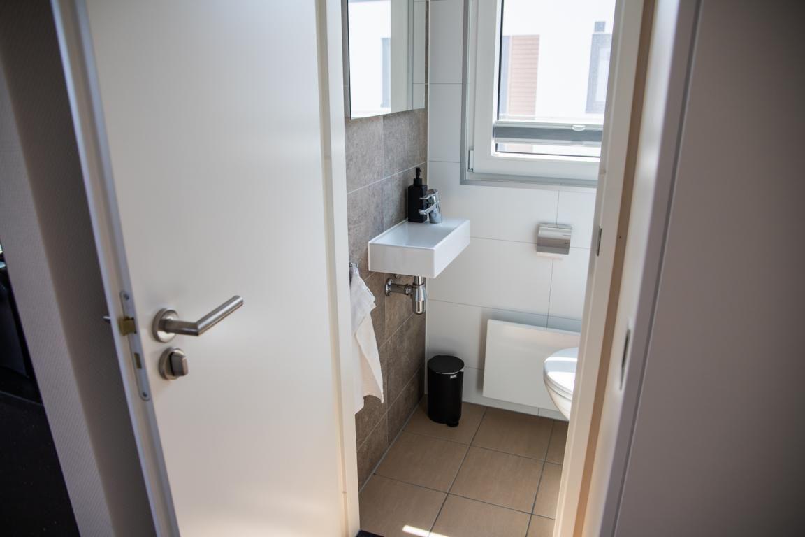 Das Badezimmer verfügt über Dusche, WC, Waschbecken, Spiegel, warmes Wasser und ein Fenster. Bettwäsche und Handtücher sind ebenfalls inklusive, sodass Sie Ihr Gepäck auf das Wesentliche konzentrieren können.
