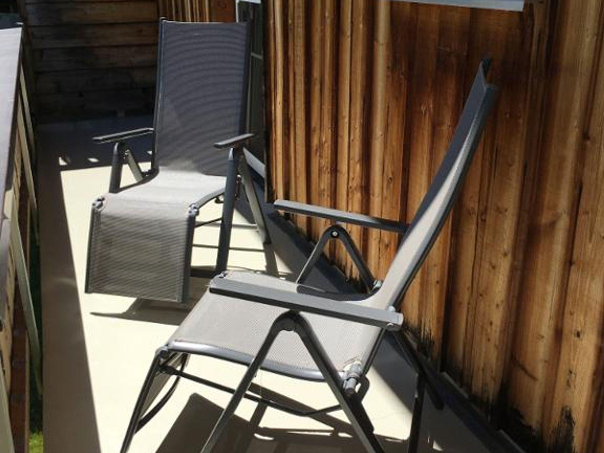 Der große Balkon verläuft von der Südseite zur Ostseite und hat fast den ganzen Tag Sonne. Genießen Sie Ihr bayrisches Frühstück auf den Biergartenmöbeln und die Sonne auf den vorhandenen Liegestühlen.