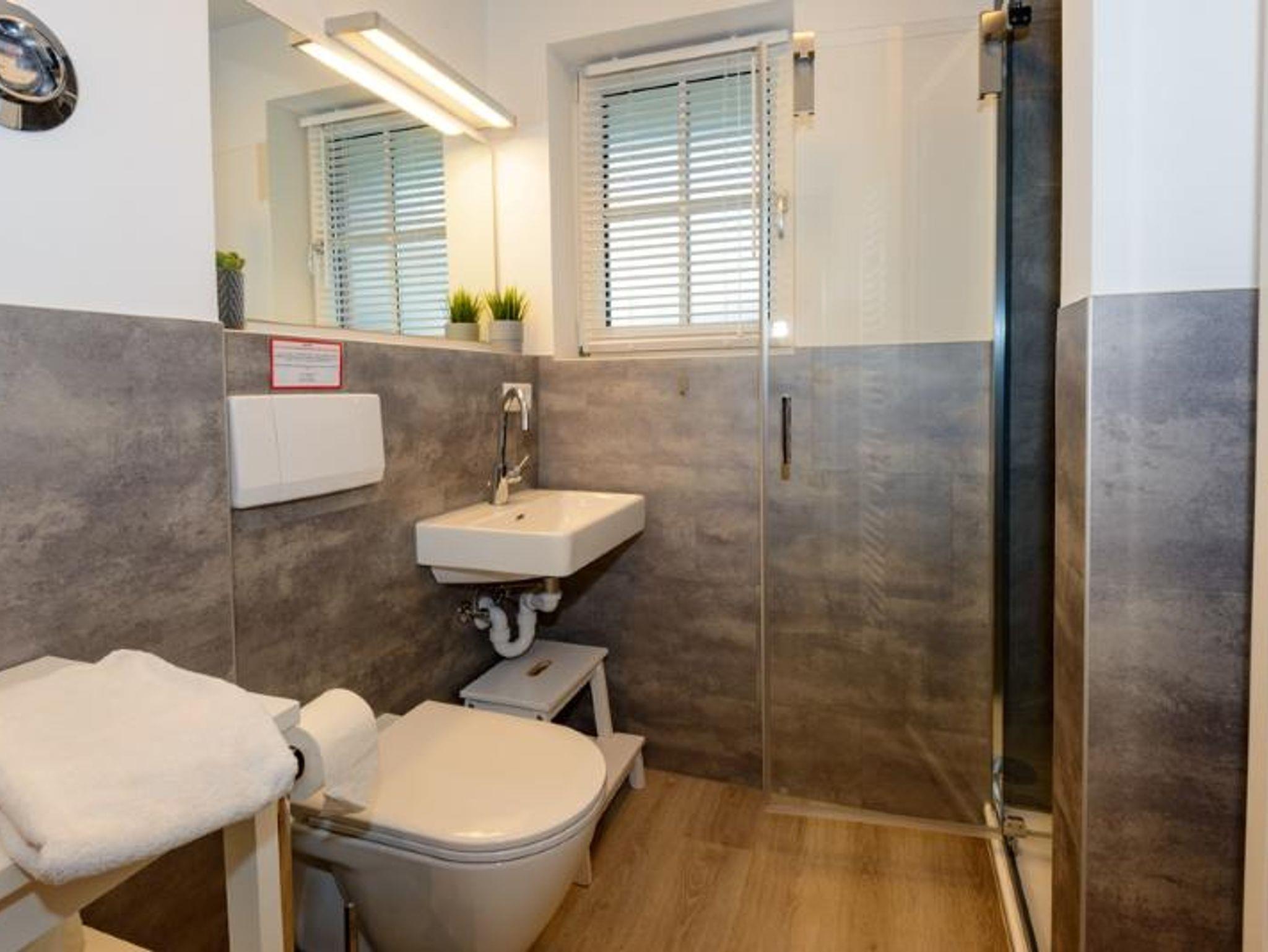 ein Bad mit Dusche/WC im Obergeschoss. Außerdem ein Schlafzimmer und TV,