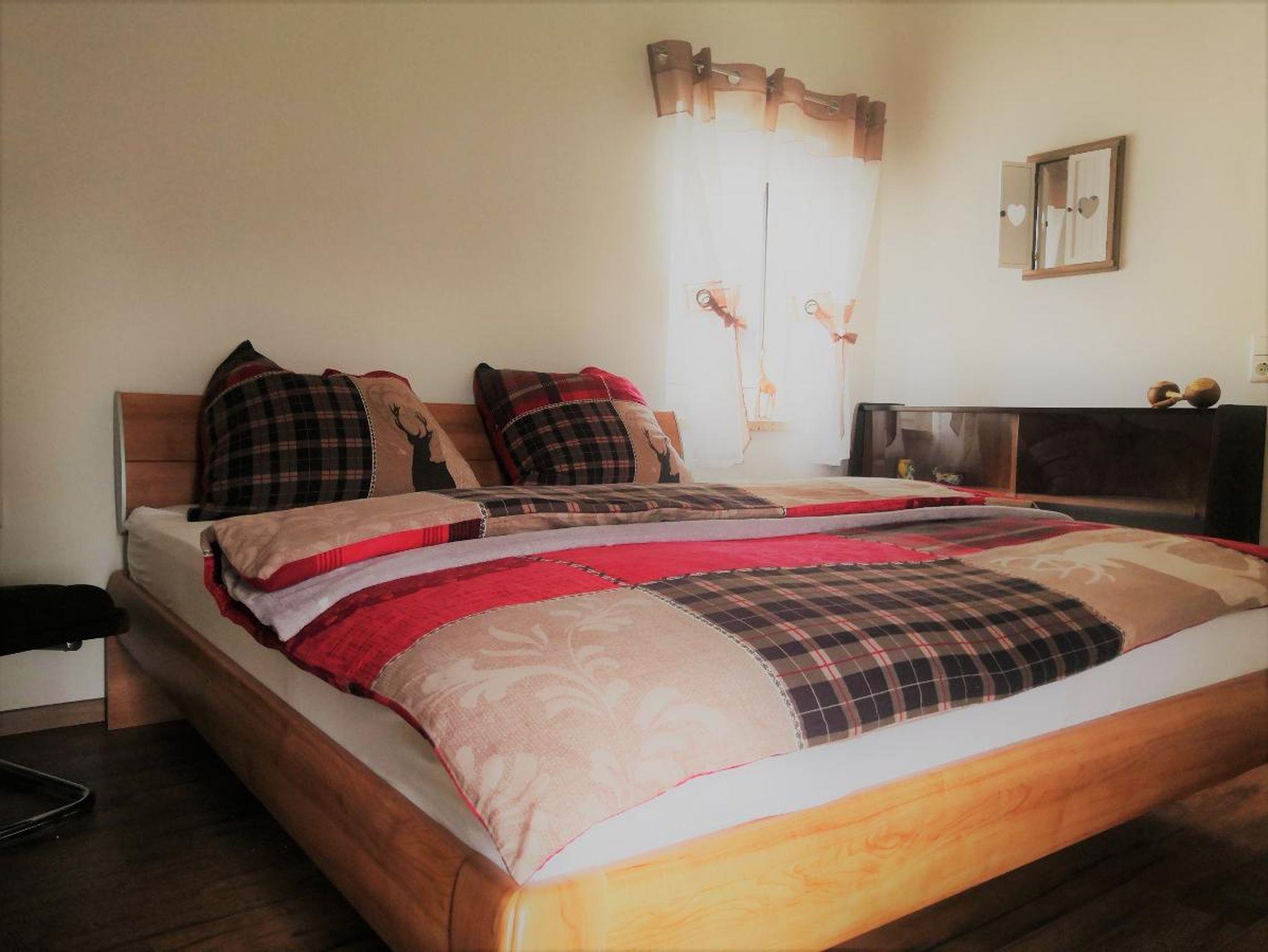 Die Ferienwohnung verfügt über ein Schlafzimmer mit Doppelbetten, ein frisch renoviertes Badezimmer mit Badewanne und ebenerdiger Regendusche, sowie eine neue, komplett ausgestattete Küche. Im Wohn/Essbereich mit Sitzgruppe und Sat-TV kann man sich wohl fühlen.
