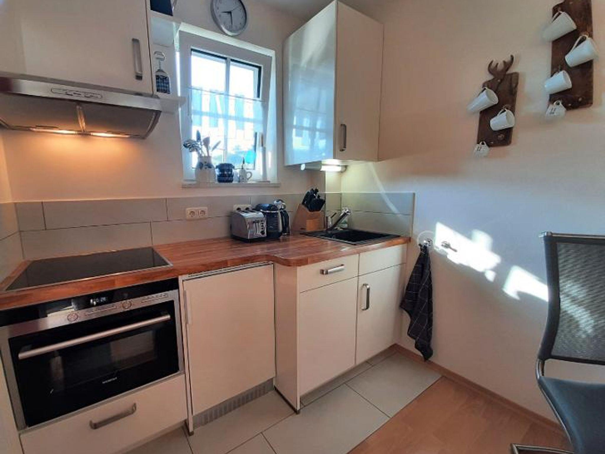 Der Wohn-/Essbereich ist mit einer Küchenzeile mit Kühlschrank und Gefrierfach, Geschirrspülmaschine, Ceran-Kochfeld, Backofen, Mikrowelle, Dunstabzugshaube, Wasserkocher, Toaster, Kapselkaffeemaschine (Nespresso) sowie Filterkaffeemaschine, Stabmixer uvm. ausgestattet. Des Weiteren sind vorhanden: Esstisch für bis zu 4 Personen, hochwertige Couch als Schlafgelegenheit mit Lattenrost für 2 Personen, Relaxliege, Couchtisch, großer TV-Flachbildschirm (mit Schwenkarm), bluetoothfähiges DAB-Radio mit CD, Vitrine (mit einer kleinen Auswahl an Büchern, CDs und Würfelspielen), Stehlampe sowie Verdunklungsrollo.