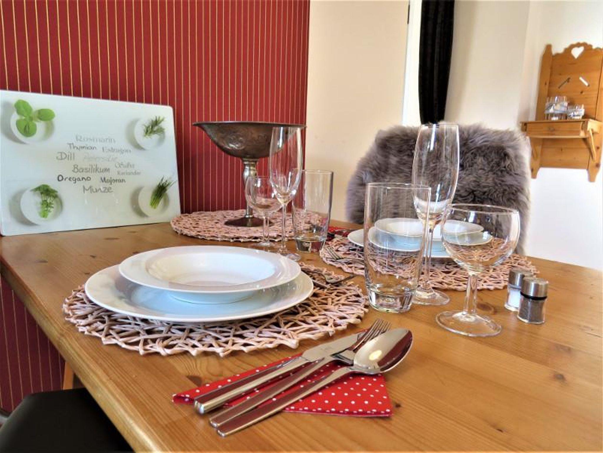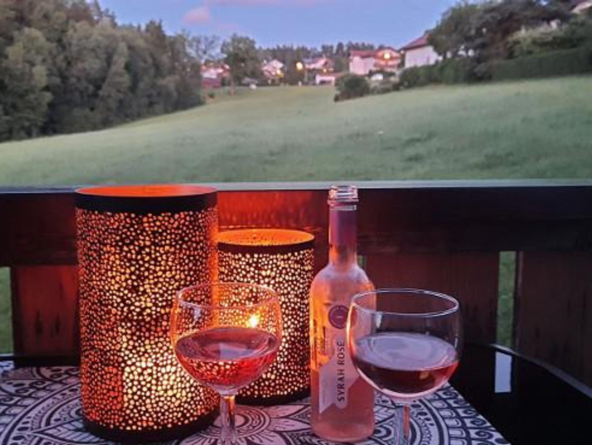 Sie hat einen herrlichen großen Balkon, der vom Schlafzimmer und vom Wohnzimmer aus begehbar ist. Sie befindet sich im 1. Stock und bietet einen herrlichen Blick auf Wiesen und Wald. Balkonmöbel für 4 Personen, Wäscheständer sowie Sonnenschirm und eine Sonnenliege sind vorhanden.