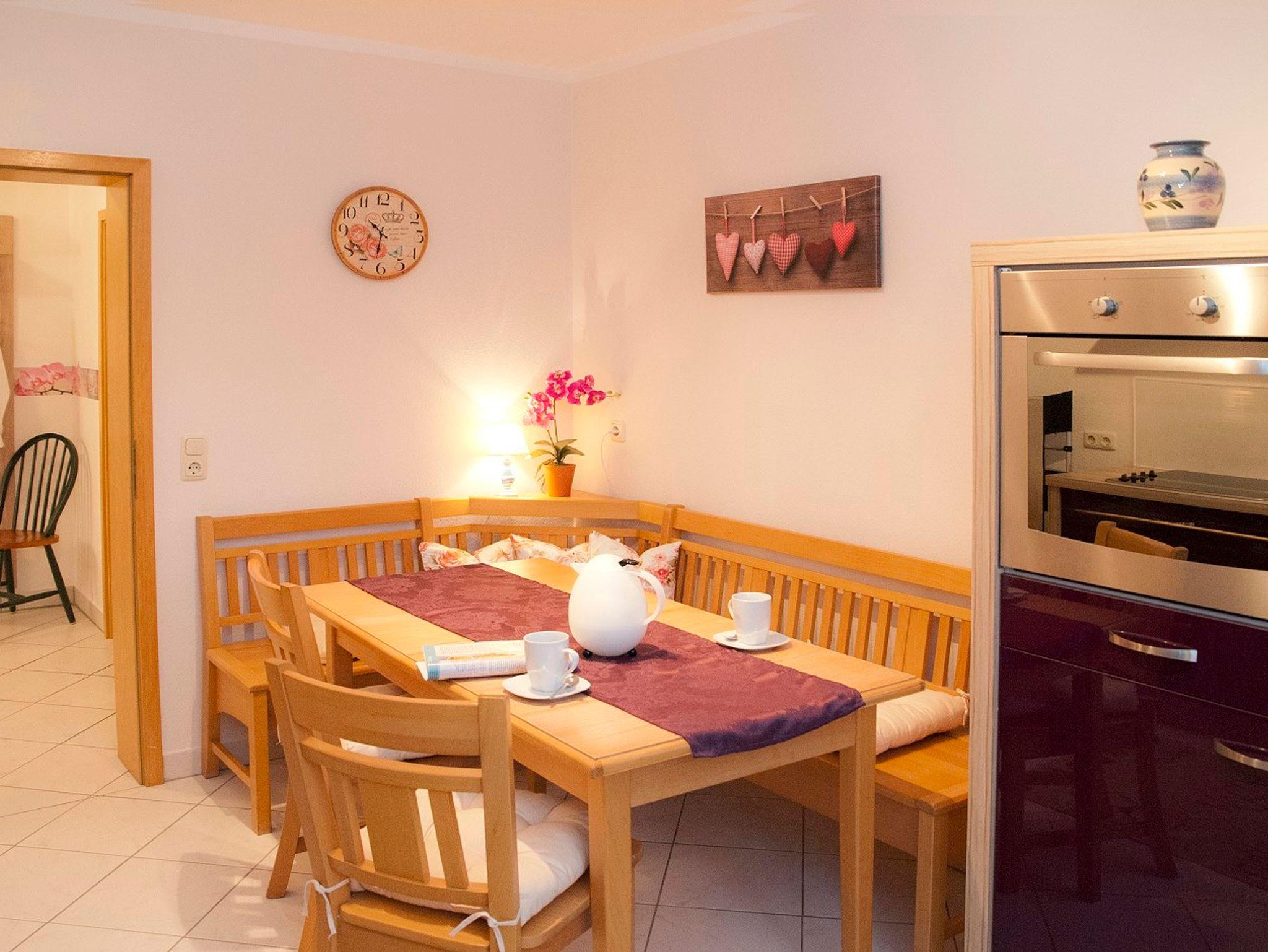 Unsere mit Liebe eingerichtete Ferienwohnung lässt für den Gast keine Wünsche offen. Sie bietet als Nichtraucherwohnung einen erholsamen Urlaub und für den Geschäftsreisenden einen angenehmen Aufenthalt. Die barrierefreie 80 m² Wohnung hat ein separates Schlafzimmer mit Boxspringbett. Im Wohnzimmer befindet sich zusätzlich eine Schlafcouch und ein Kleiderschrank. Babybett, Wickeltisch und Kinderhochstuhl sind vorhanden. In der Wohnküche befindet sich eine Eckbank mit Tisch und zwei Stühlen. In unserem Badezimmer mit Fenster bieten wir Ihnen eine Badewanne, Dusche, WC und Waschbecken. Föhn und Duschhocker sind vorhanden. Ein Balkon ist vorhanden, dieser gehört jedoch nicht direkt zur Wohnung, sondern kann Ihnen nach vorheriger Absprache zur Verfügung gestellt werden.