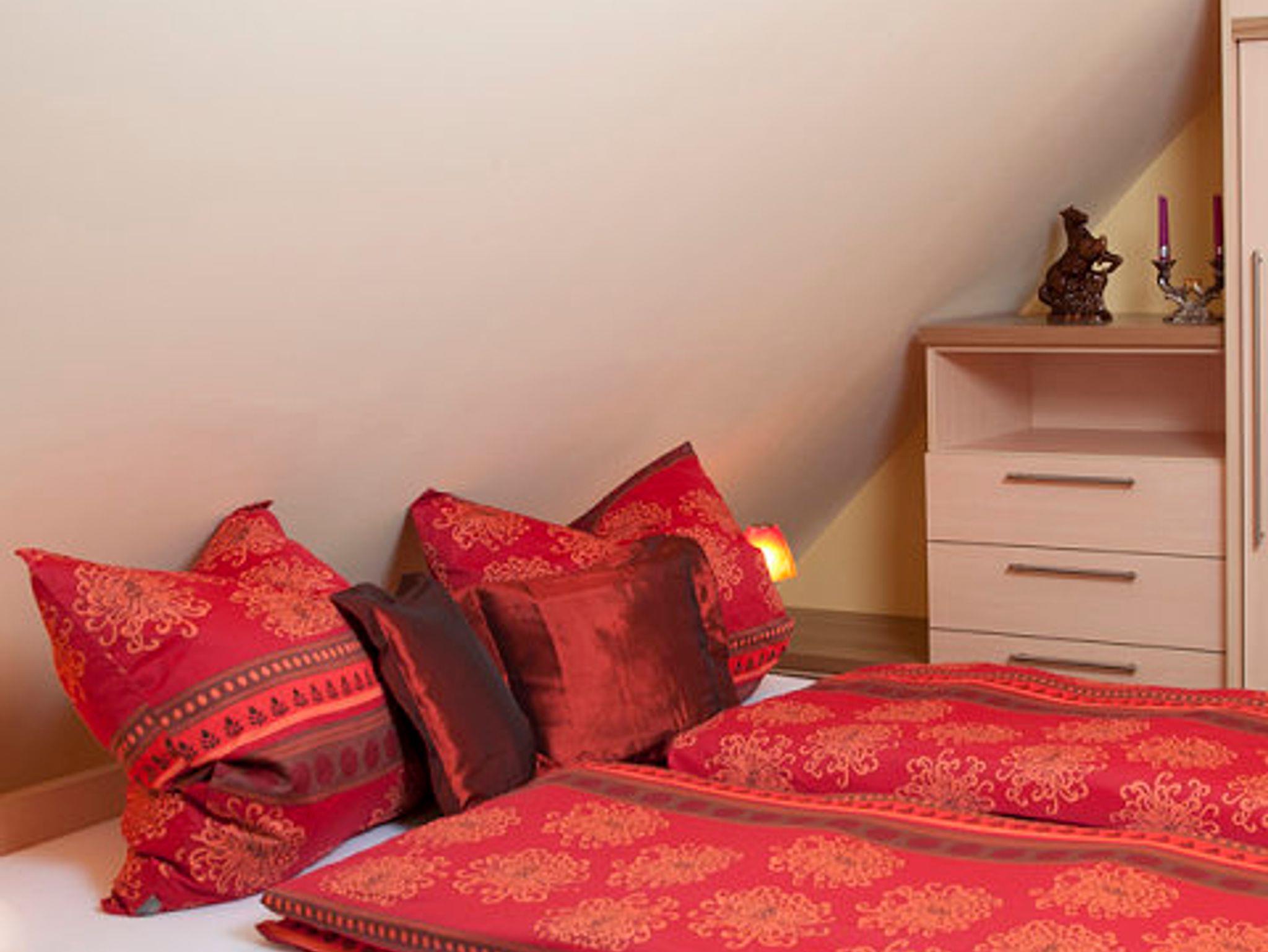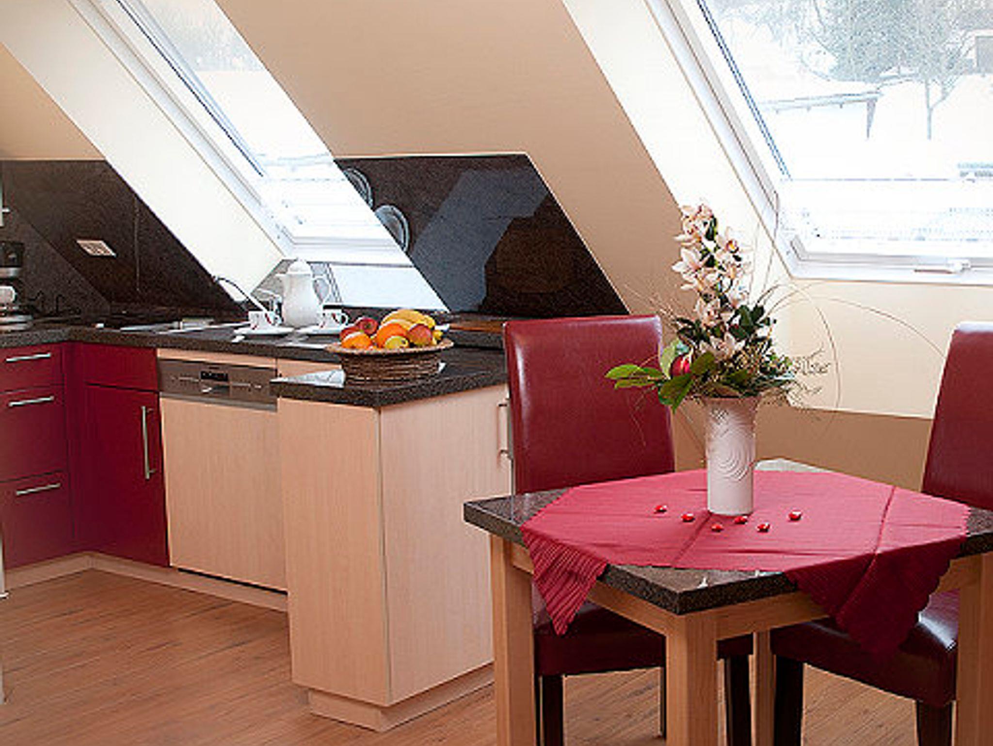 Unsere mit Liebe eingerichtete Ferienwohnung lässt für den Gast keine Wünsche offen. Sie bietet als Nichtraucherwohnung einen erholsamen Urlaub und für den Geschäftsreisenden einen angenehmen Aufenthalt. Die 31 m² große Dachgeschoßwohnung ist mit Rollo`s ausgestattet. Der offene Schlaf- und Wohnbereich verfügt über ein Doppelbett, eine voll eingerichtete Küche und einen Essbereich. Im Bad mit Fenster befindet sich eine Dusche, WC, Waschbecken, Föhn und Handtuchtrockner. Ein Balkon ist vorhanden, dieser gehört jedoch nicht direkt zur Wohnung und kann Ihnen zur Verfügung gestellt werden.