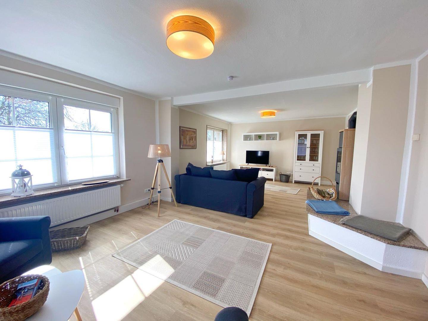 Die Ferienwohnung "Vilm" befindet sich im Erdgeschoß des Reethauses. Sie bietet auf ca. 105 qm Wohnfläche Platz für maximal 5 Personen. Die komplett im Jahr 2020 sanierte und neu möblierte Wohnung besteht aus einem sehr großen gemütlichen Wohnzimmer mit Kamin, Flachbild-TV und DVD-Player sowie aus zwei separaten Schlafzimmern mit je einem Doppelbett. Im Wohnzimmer gibt es eine Schlafcouch, wo eine weitere Person übernachten kann. Die geräumige Landhausküche ist komplett eingerichtet und bietet neben einem Ceranherd, Backofen, Geschirrspüler, Mikrowelle natürlich auch Kaffeemaschine, Toaster, Radio und Wasserkocher. Von ihr gelangt man auf die direkt zur Ferienwohnung gehörende 15qm große Terrasse mit Sitzmöbeln und einem wunderschönen Blick über den Bauerngarten und die angrenzende Landschaft. Im großzügigen Bad gibt es eine Dusche, WC und einen Haartrockner. Eine Waschmaschine steht zur gemeinschaftlichen Nutzung zur Verfügung ( von außen in den Keller ). Ein Kinderbett sowie ein Hochstuhl sind vorhanden. Die angrenzende Wiesen- und Boddenlandschaft bietet Freunden des ruhigen, sanften naturnahen Tourismus, insbesondere den Radlern, Reitsportlern, Anglern und Seglern ideale Bedingungen.