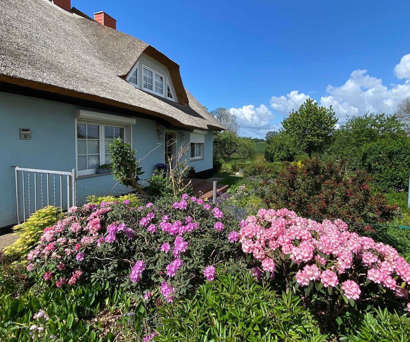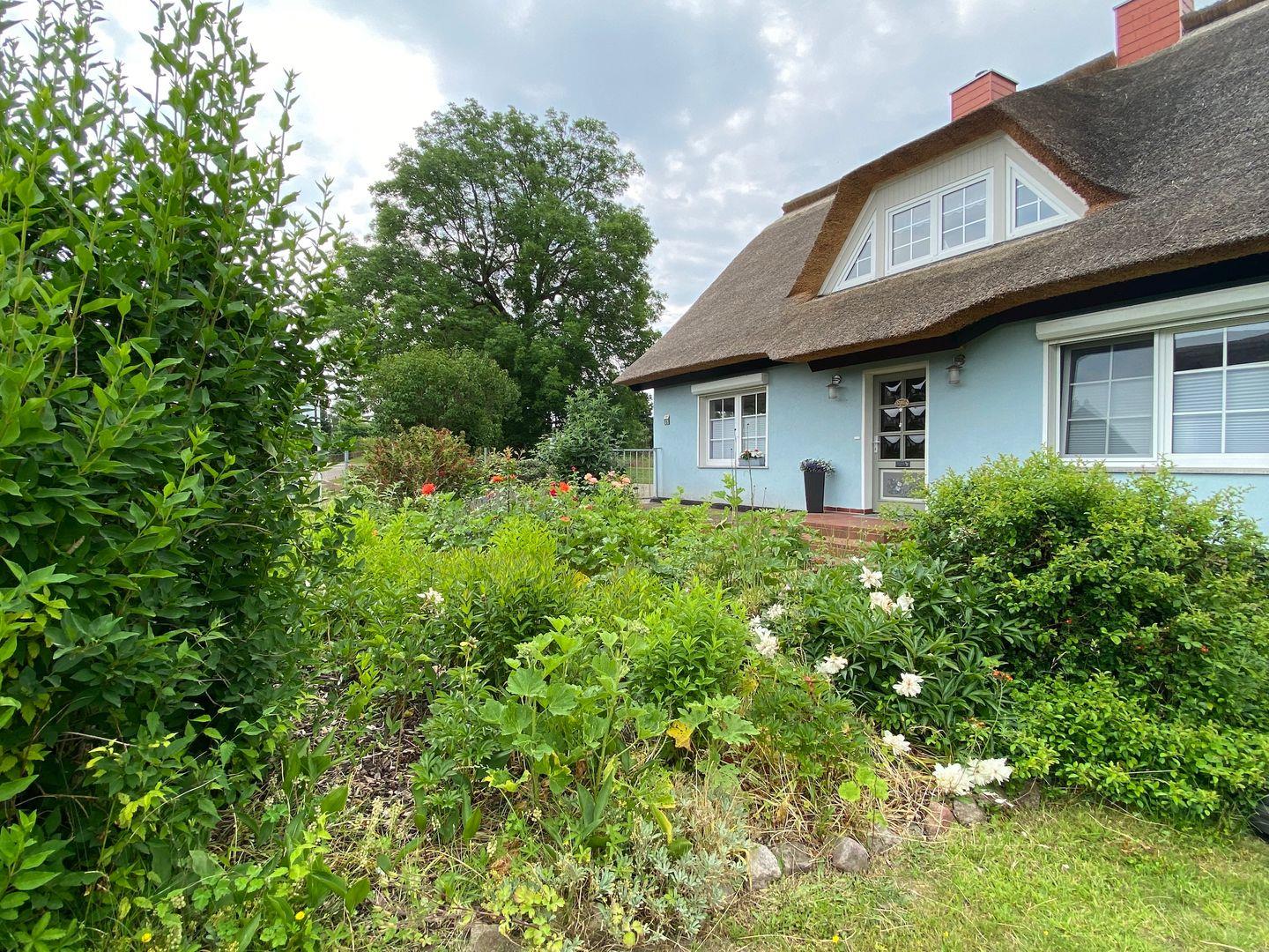 Gemütliche Ferienwohnung "Goor" im Reetdachhaus in Vilmnitz, ideal für Familien mit Garten und Parkmöglichkeiten.