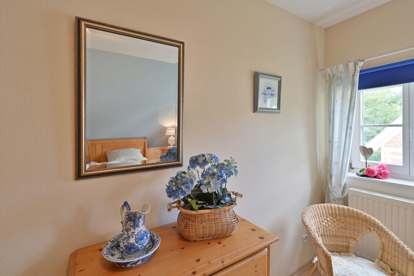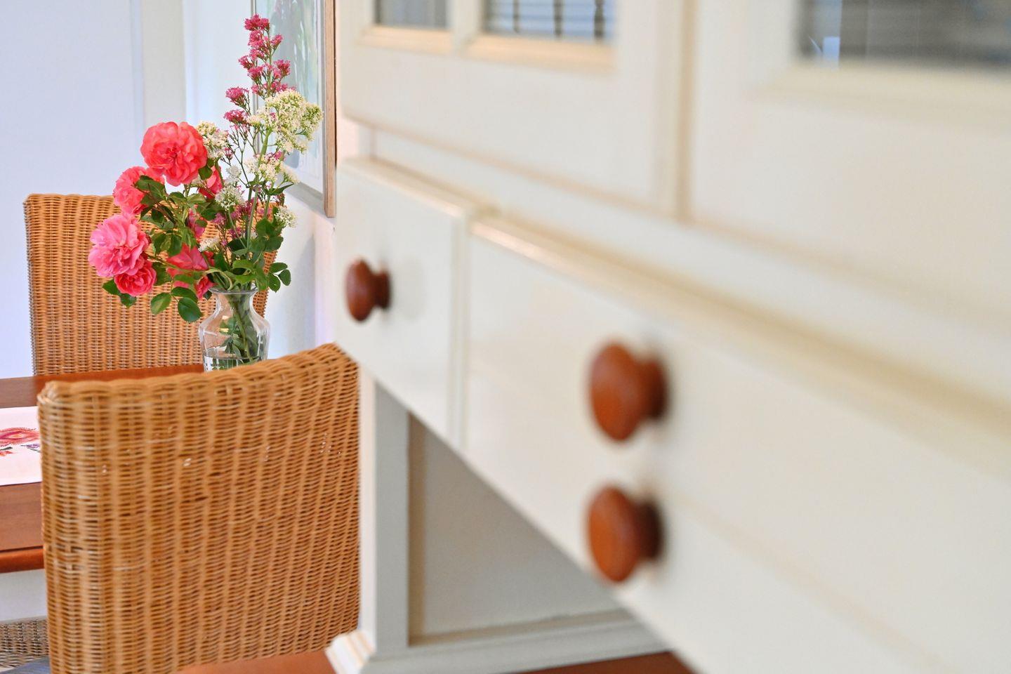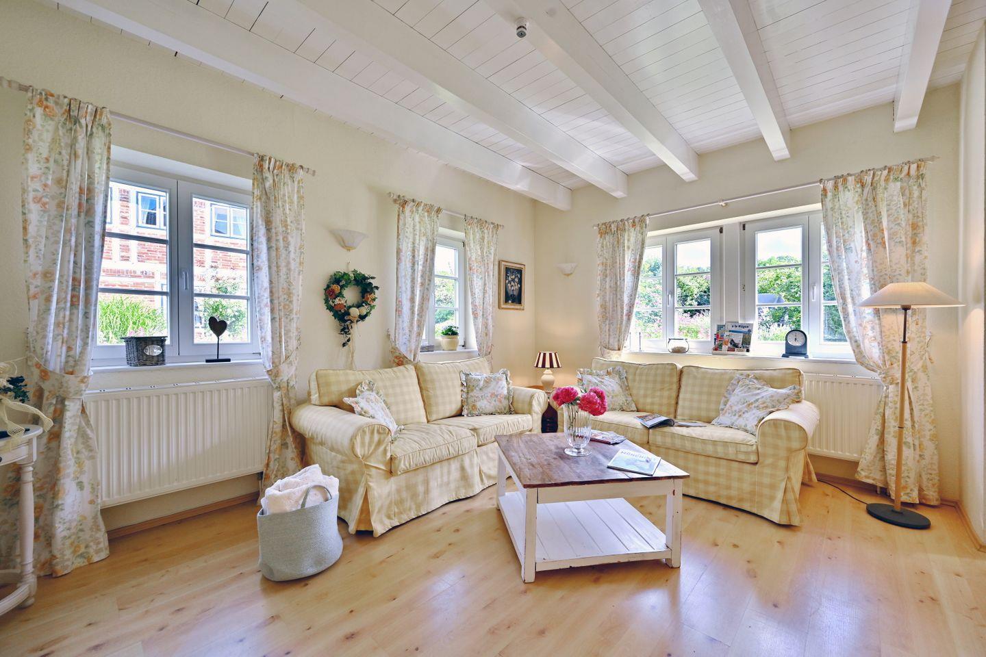 Die Ferienwohnung ist farblich aufeinander abgestimmt und mit viel Liebe zum Detail im Landhausstil eingerichtet.