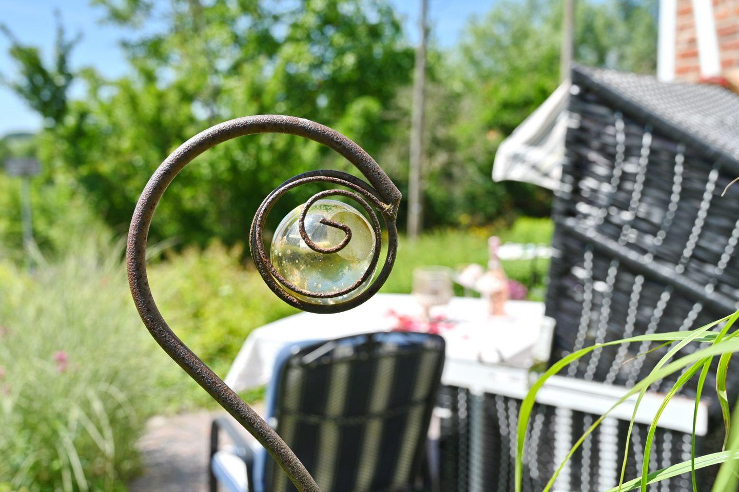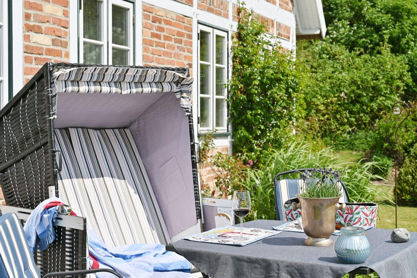 Im eigenen Strandkorb auf der gemütlichen Terrasse mit herrlichem Blick in den Garten und auf die umliegende ruhige Landschaft können Sie die Seele baumeln lassen und vom Alltag ausspannen. In der Nähe des Hauses können Sie wunderschön wandern, Rad fahren und die traumhafte Natur genießen.