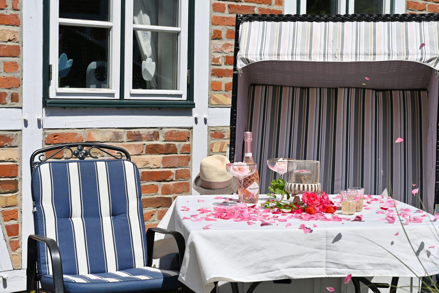 Zu jeder der Wohnungen gehört eine separate Terrasse in der wunderschönen großen Gartenanlage incl. Strandkorb und Gartenmöbeln. WLAN ist vorhanden.