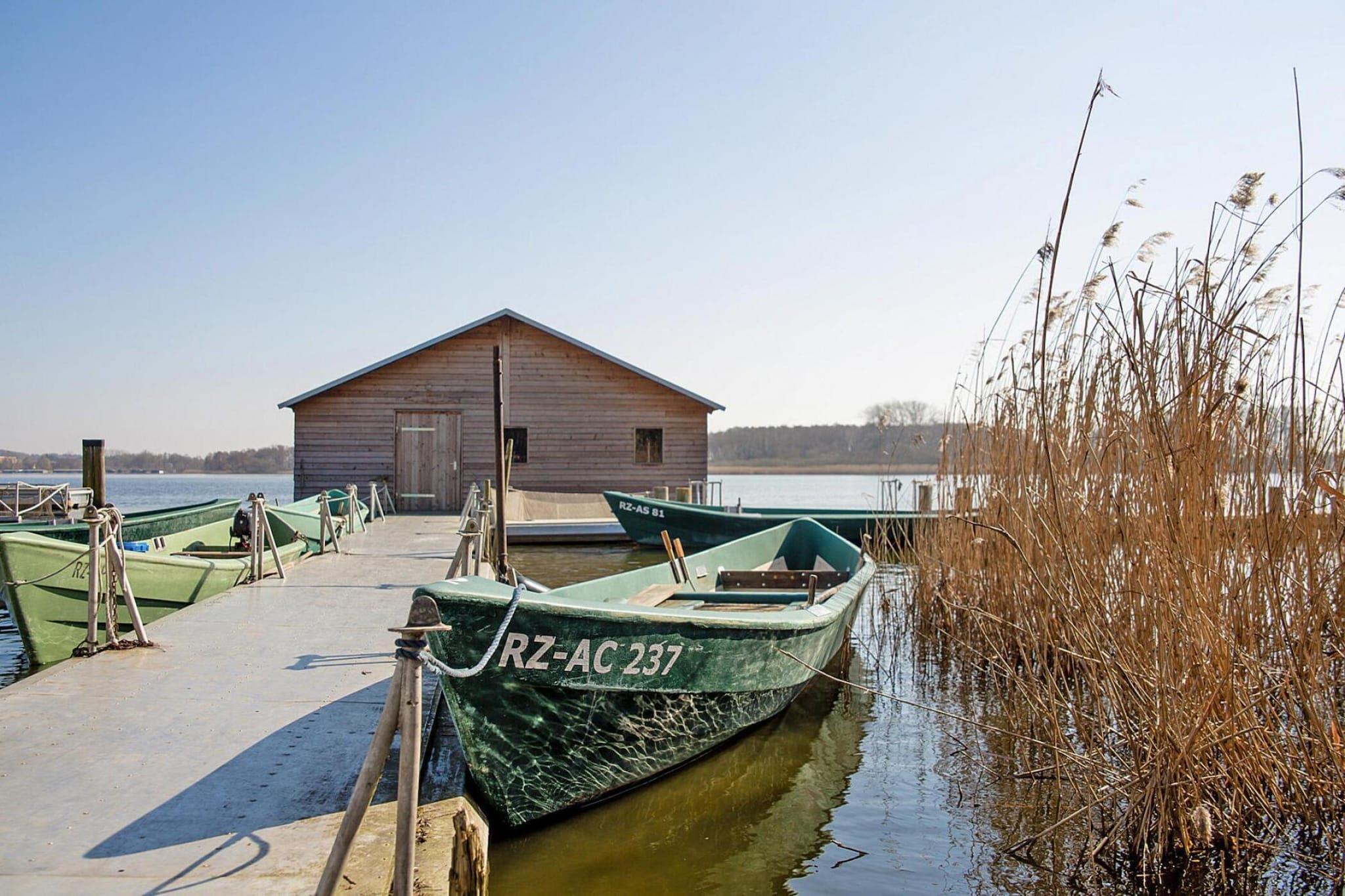 Kanutouren auf der Müritz, Angeln am Ufer oder einfach nur die Ruhe auf dem Bootssteg genießen können Sie rund um Ihre geschmackvoll eingerichtete Ferienwohnung auf dem Fischerhof in Vipperow. Die malerische Aussicht auf den See lässt keine Zweifel aufkommen: Hier können Sie den Alltag hinter sich lassen und sich vom naturnahen Charme der Mecklenburgischen Seenplatte bezaubern lassen. Die gemütlichen Studios über zwei Etagen und für bis zu vier Personen sind darüber hinaus wie gemacht für eine tolle gemeinsame Zeit mit der Familie oder Freunden. Vor allem Kinder werden mit Begeisterung ihren Schlafplatz auf der offenen Schlafgalerie einrichten. In der offenen Miniküche können Sie sich selbst etwas kochen, oder Sie gönnen sich ein frisches Fischbrötchen aus der Imbiss-Küche des Fischerhofes. Ihr Urlaubsdomizil erwartet Sie unmittelbar am südlichen Ufer der Müritz im Ort Vipperow, dort wo der Müritzarm in die Kleine Müritz fließt. Beide sind Teil der Müritz-Havel-Wasserstraße. Im Ort gibt es eine Post, sowie ein HofCafé und Ferienunterkünfte. Gute Einkaufsmöglichkeiten für den täglichen Bedarf, Restaurants sowie eine Apotheke finden Sie in Rechlin am gegenüberliegenden Ufer, etwa vier Kilometer entfernt. Highlights: Alle verbrauchsabhängigen Energiekosten und Bettwäsche inklusive WLAN inklusive 15% Ermäßigung auf den Verleih von Booten der Müritzfischer auf deren Fischereihöfen in Plau am See, Krakow am See und Waren Aktivitäten in der Nähe: Auf Angler und alle, die es gerne werden möchten wartet auf der Müritz und den umliegenden Seen ein wahres Paradies. Doch neben Wassersport können Sie sich auch an Land vielseitig beschäftigen. Lange Spaziergänge und ausgedehnte Fahrradtouren beginnen Sie am besten direkt an der Haustür Ihres Urlaubsdomizils. Einen angenehmen Kontrast bildet ein Besuch in den Städten Waren an der Müritz oder Neustrelitz (beide rund 30 Kilometer entfernt). Der Schlossgarten mit Kirche und Orangerie zählt zu den wichtigsten Sehenswürdigkeiten in Neustrelitz. Rund um den Marktplatz können Sie den bis heute erhaltenen Gründungsteil der Stadt bewundern. Wussten Sie übrigens: Der Stadtgrundriss aus der Altbarockzeit wurde im Auftrag des Herzogs Adolf Friedrich III. einer italienischen Idealstadt nachempfunden. Auch in Waren können Sie auf eigene Faust durch die Straßen bummeln oder sich einer der zahlreichen Stadtführungen anschließen. Bei Regenwetter oder müden Füßen bietet sich eine Rundfahrt mit der Touristenbahn an. Außerdem hat sich die Stadt auch als Heilbad einen ausgezeichneten Namen gemacht. Im Kurzentrum mit jodhaltiger Thermalsole können Sie individuelle Beschwerden behandeln lassen. Unser Tipp: Besuchen Sie unbedingt das Müritzeum mit Deutschlands größter Süßwasseraquarienlandschaft.