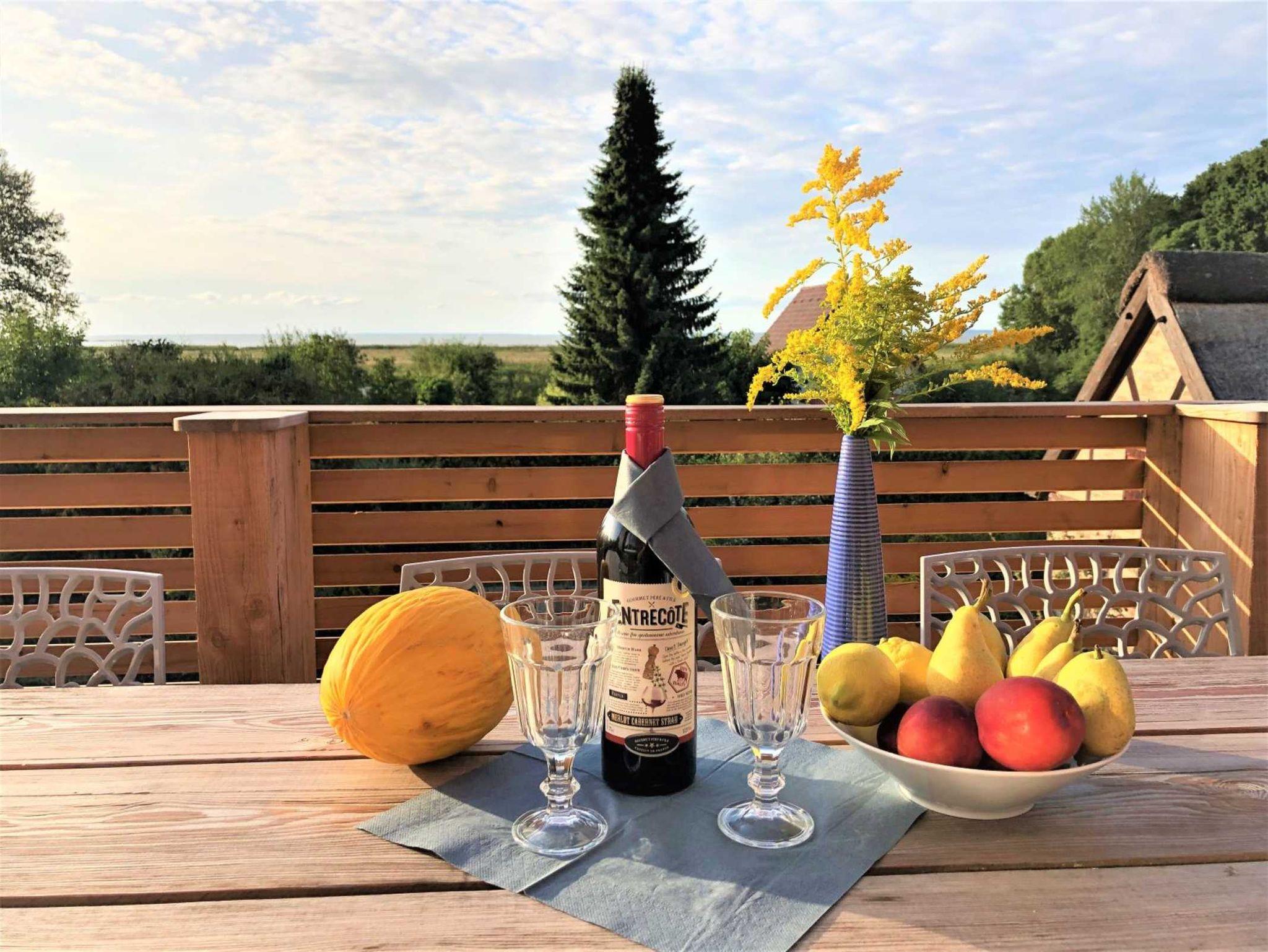 Das Ferienhaus befindet sich im kleinen Örtchen Vogelsang- Warsin und bietet einen tollen Ausblick auf das Haff.