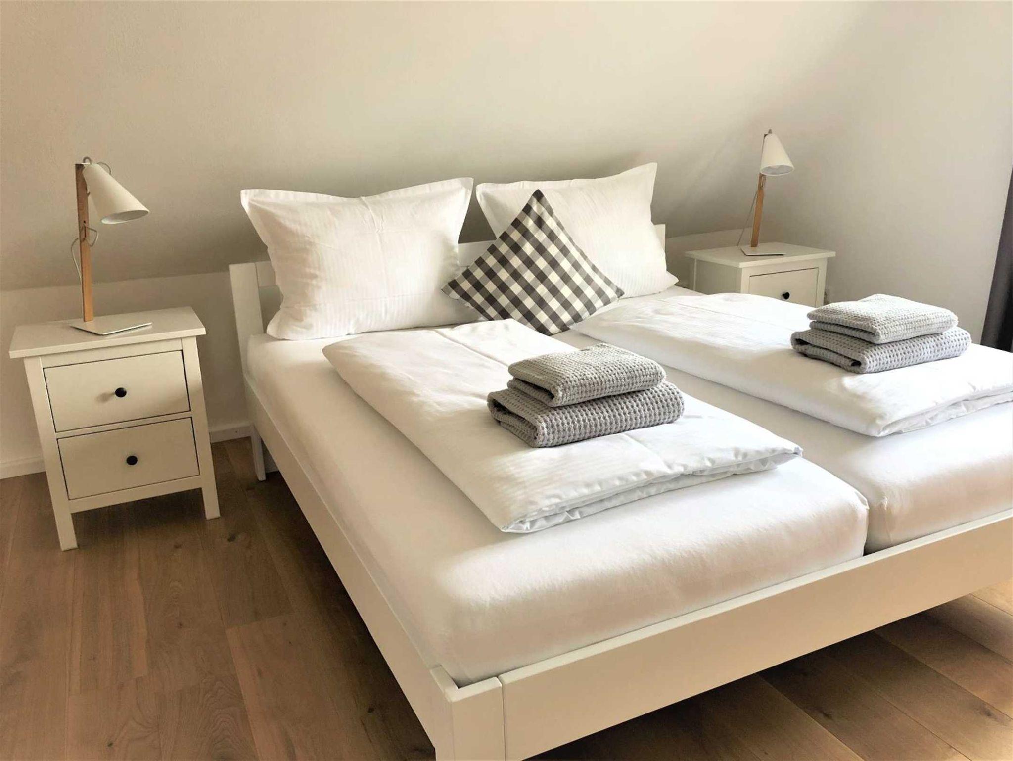 Pro Woche: 1 Duschtuch/pro Person, 1 Handtuch/pro Person, 2 Duschvorleger, 4 Gästehandtücher,