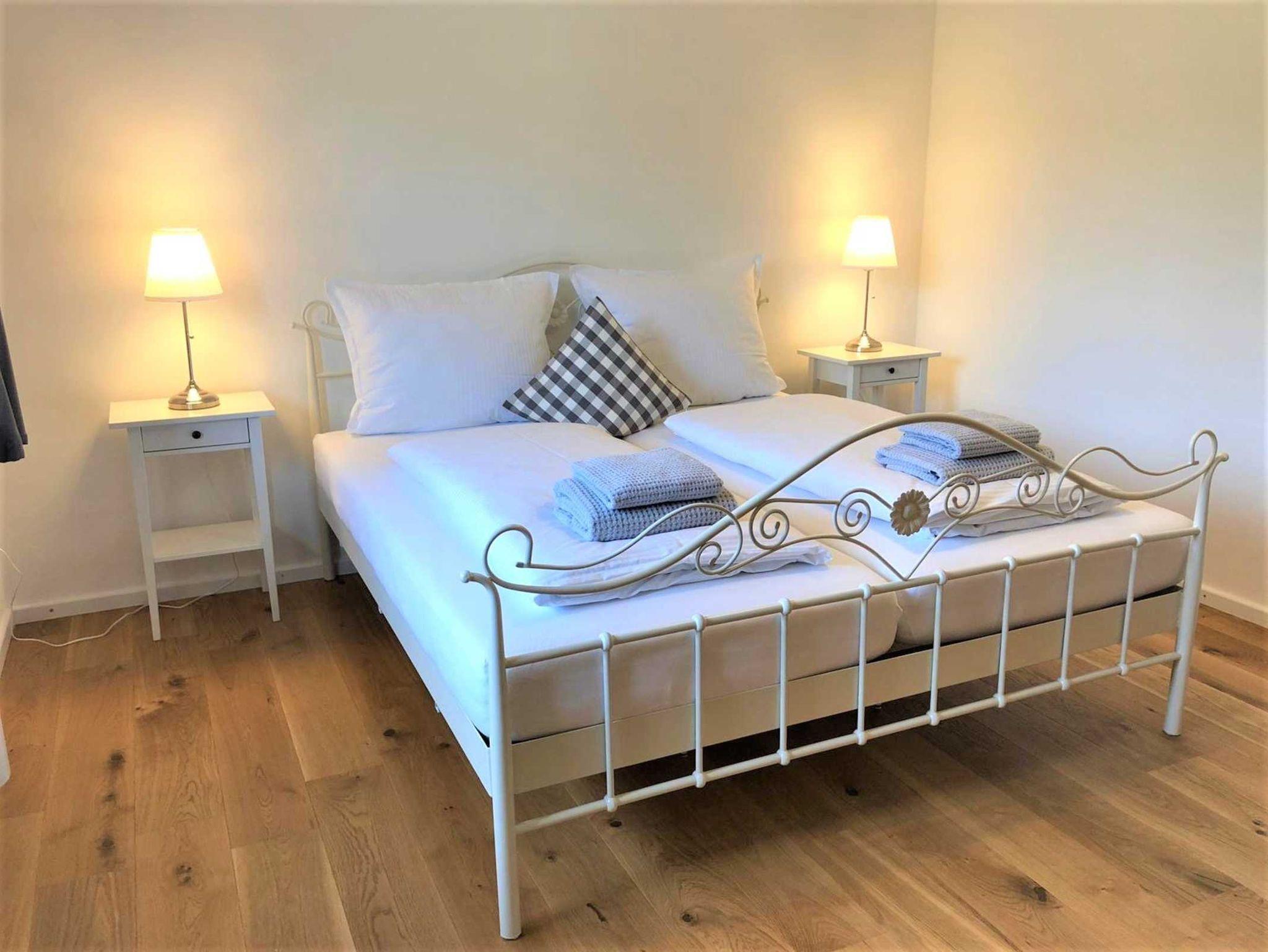 Farblich abgestimmt und stilvoll eingerichtet verfügt das Haus über drei Schlafzimmer mit je einem großen Doppelbett, einem Kleiderschrank und Sitzgelegenheiten.