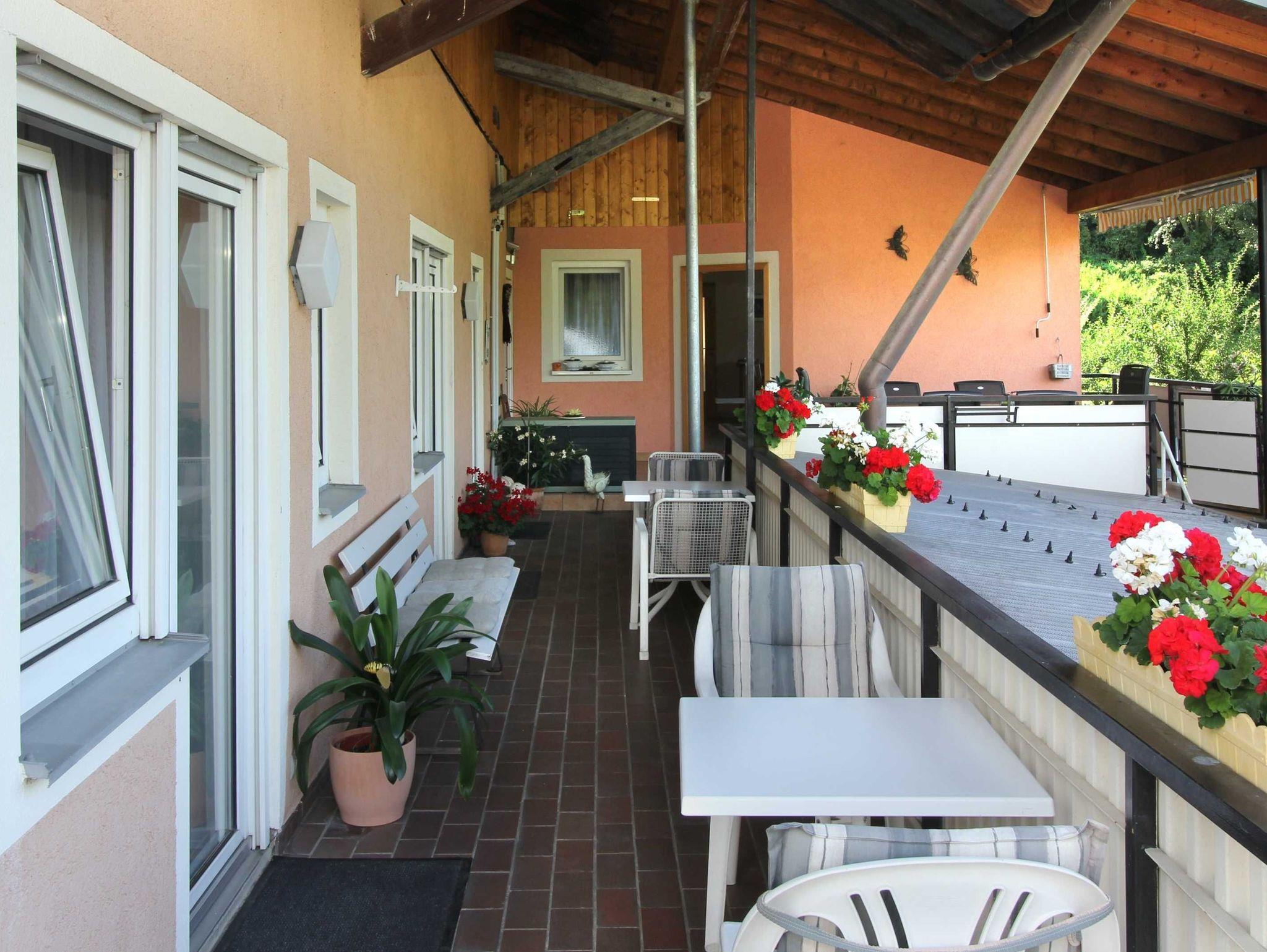 Wein- und Gästehaus Baumer bietet Ihnen eine komfortable Ferienwohnung für 2-4 Personen, bestehend aus 2 Schlafräumen, Aufenthaltsraum mit TV und einer komplett eingerichteten Küche. Dusche ,WC und sep. WC. Überdachte Terrasse große Sonnenterrasse mit Blick auf die Weinbergterrassen und Obstgärten. Parkplatz beim Haus.