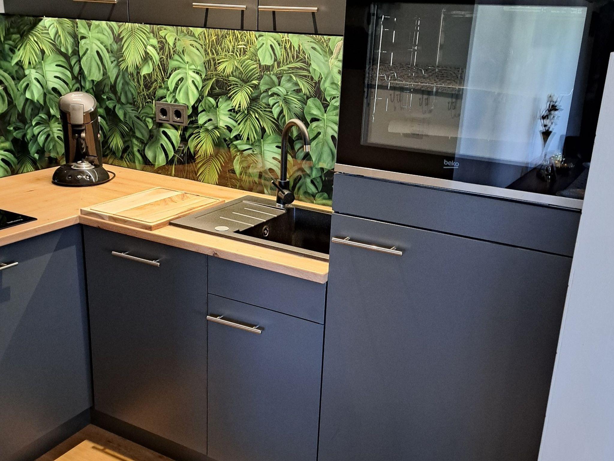 Es steht Ihnen eine komplett eingerichtete moderne Küche mit Kaffeemaschine, Herd mit Backofen und Ceranfeld, ein großer Kühlschrank, Eierkocher, Mixer zur Verfügung.