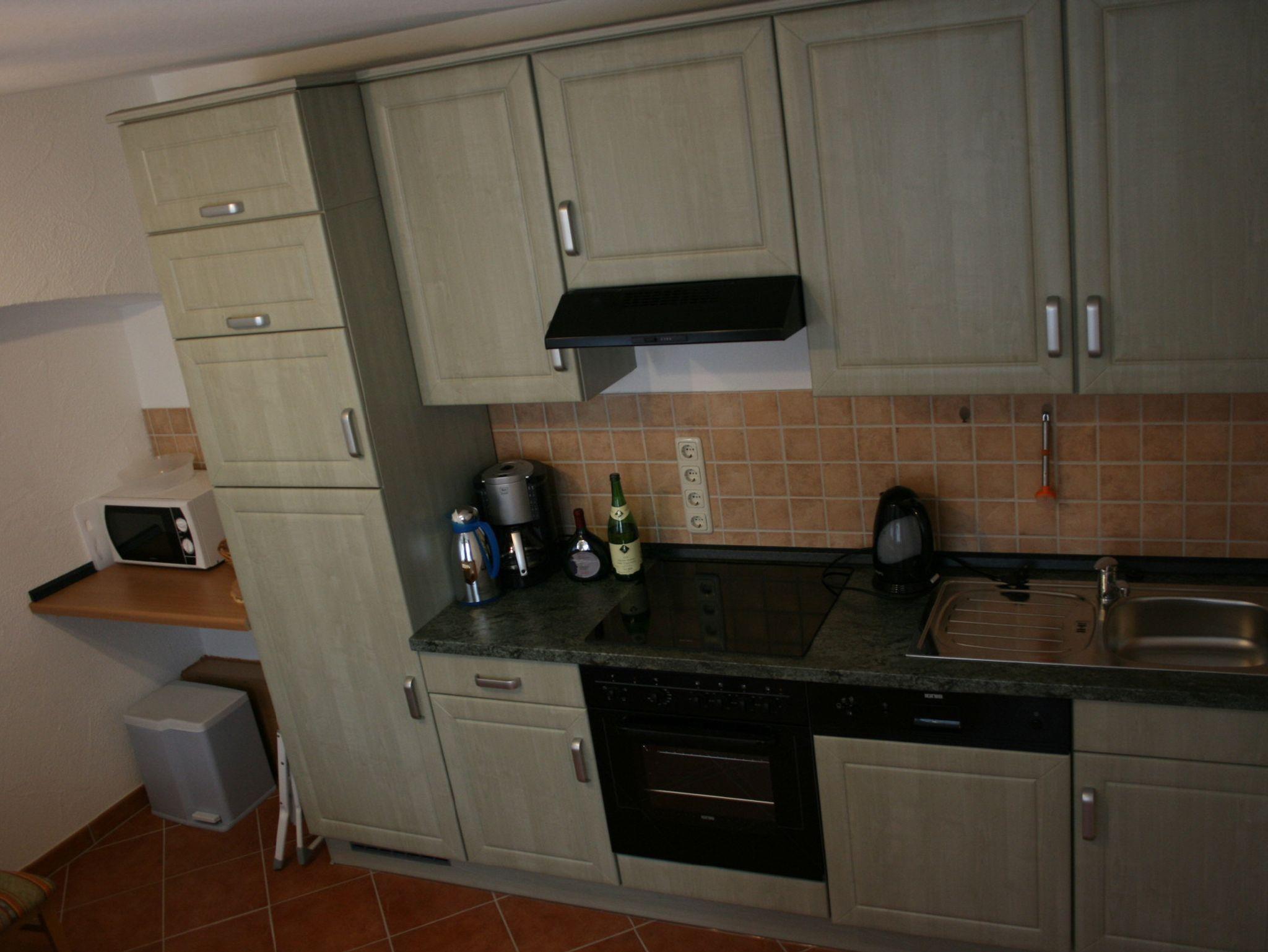 CD-Radio, Geschirrspülmaschine, Herd mit Ceranfeld und Backröhre, Dunstabzugshaube, Kühlschrank, kleiner Eisschrank, Mikrowelle, Kaffeemaschine, Wasserkocher, Toaster, Eierkocher und sonstigem guten Küchenkomfort.