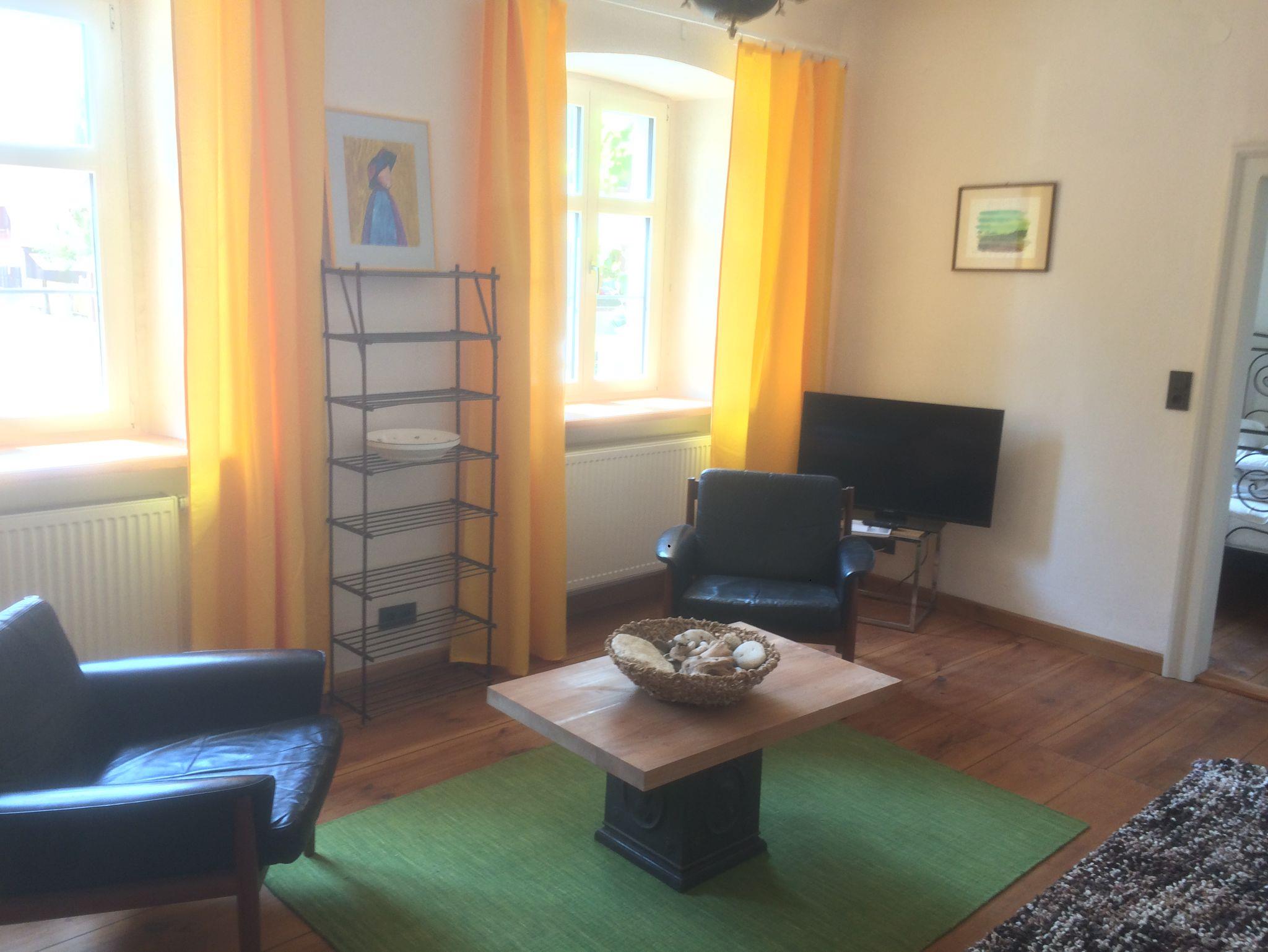 Die Rathswohnung ist 80 qm gross und verfügt über ein Schlafzimmer mit einem Doppelbett, ein Schlafzimmer mit einem französischem Doppelbett (B: 140 cm) , Wohnzimmer mit Sat TV , Küche mit Essecke sowie Spülmaschine und ein geräumiges Tageslicht Bad mit barrierefreier Dusche sowie Badewanne.