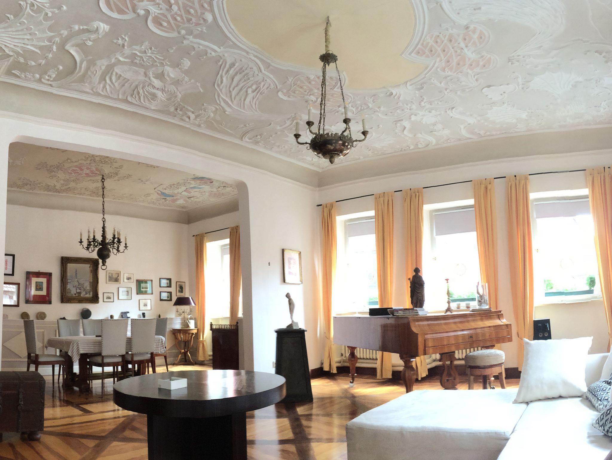 Unsere Ferienwohnung in den Räumen des ehemaligen Weinhändel Palais Meissner, lässt Sie das barocke Ambiente aus fürstbischöflicher Zeit, kombiniert mit modernem Komfort, erleben. Sie genießen eine großzügige Wohnung von 150 qm mit Speisezimmer & Salon, Küche und WC im 1. OG sowie zwei Schlafzimmern mit superior Boxspingbetten und geräumigem Badezimmer im 2. OG.
