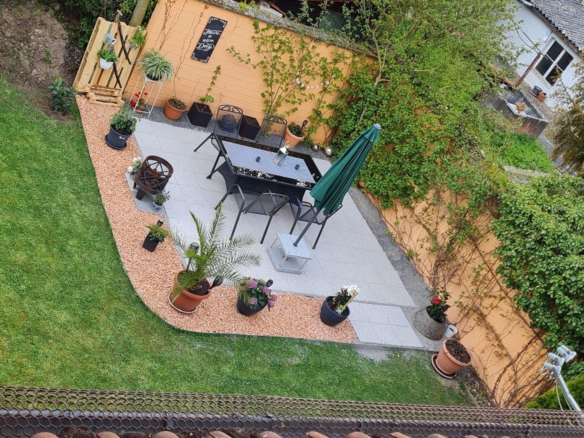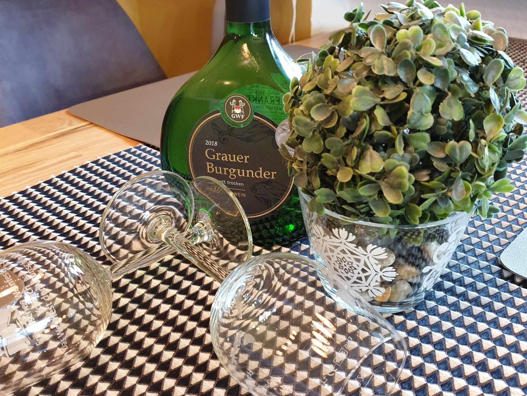 Die Ferienwohnung (ca.150 qm) verfügt über einen sonnigen gemütlich eingerichteten Wohnbereich u. offenen Essbereich. Ebenso ein Flachbildfernseher (SAT-Anschluss) mit dazugehöriger Schlafcouch. Die gut ausgestattete Küche lässt keine Wünsche offen .Die Ferienwohnung hat zwei separate Schlafräume. Über eine Wendeltreppe gelangen Sie zur Schlafgalerie mit 2 Einzelbetten (inkl. Bettwäsche). Von hier aus haben Sie einen herrlichen Ausblick zu den Weinbergen und „ Maria im Weingarten“.