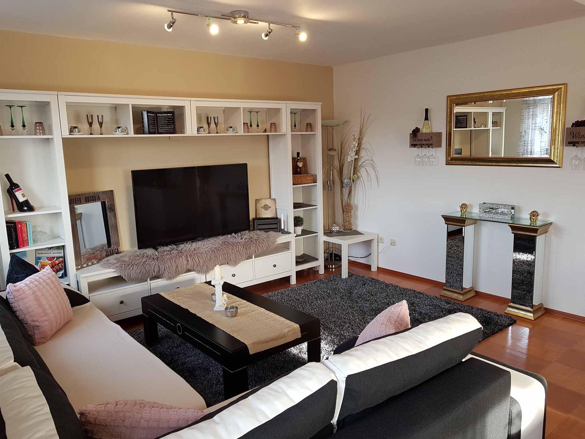 Moderne Wohnlandschaft mit Blick auf dem Flachbildfernseher in 81 Diagonale, auf Wunsch auch als Schlafplatz nutzbar.