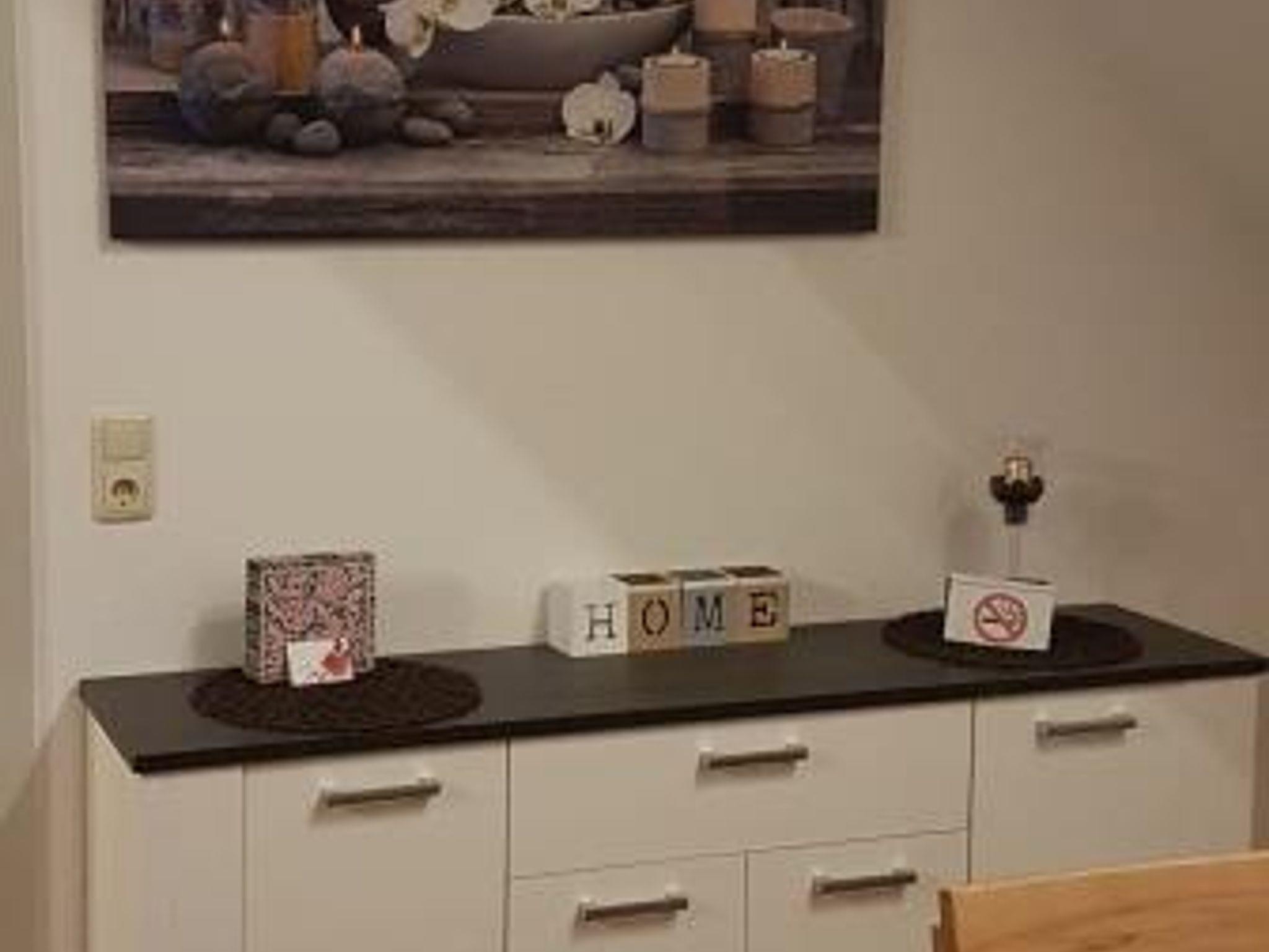 Es steht Ihnen eine komplett eingerichtete modere Küche mit Spülmaschine, Kaffeemaschine, Wasserkocher, Herd mit Backofen und Ceranfeld, ein großer Kühlschrank, Eierkocher, und Mixer zur Verfügung.