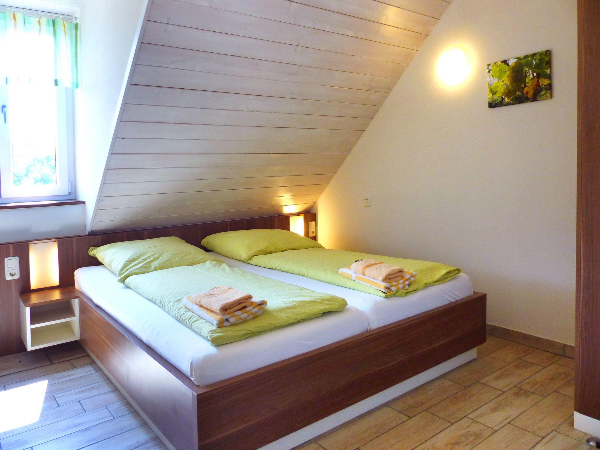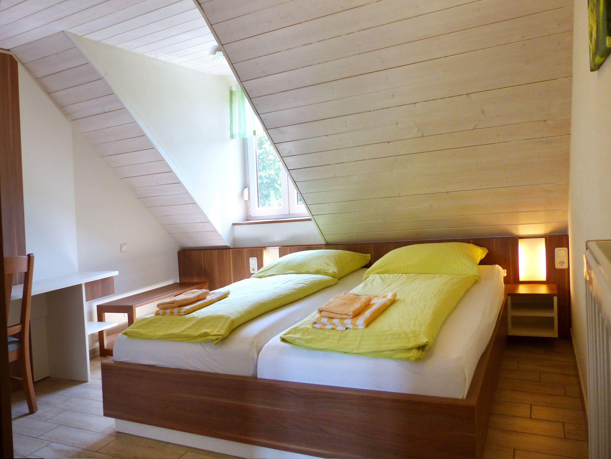 Die Zimmer befinden sich im gut isolierten Dachgeschoss unseres Weinguts und sind bequem über die breite Außentreppe erreichbar. Vom Zimmerfenster aus überblicken Sie unsere Obstanlagen und können schon am frühen Morgen eine Vielfalt von Vögel beobachten.