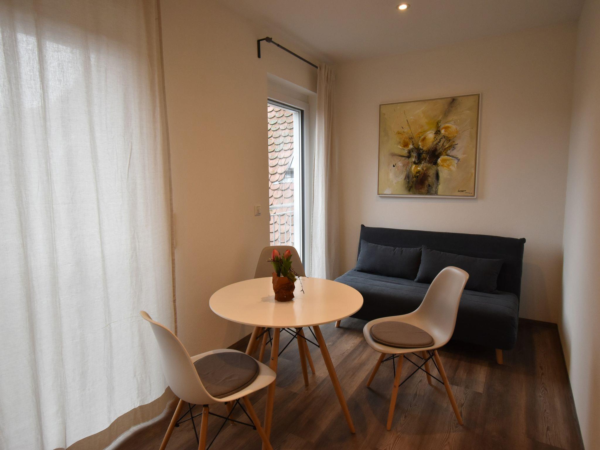 Das Appartment mit einer Größe von 52 qm verfügt über ein Wohn-/Schlafzimmer mit Küchenzeile sowie einer separaten Sitzgelegenheit und SAT-TV. Im gemütlichen Boxspring-Doppelbett können Sie sich von Ausflügen in die Altstadt und Umgebung erholen. Die liebevoll ausgestattete Küchenzeile mit Kaffeemaschine, Kühlschrank, Mikrowelle sowie Kochfeld bietet Ihnen die Möglichkeit, sich während Ihres Aufenthaltes selbst zu versorgen. Natürlich finden Sie in direkter Nachbarschaft aber auch zahlreiche Cafés und Restaurants für einen genussvollen Aufenthalt.