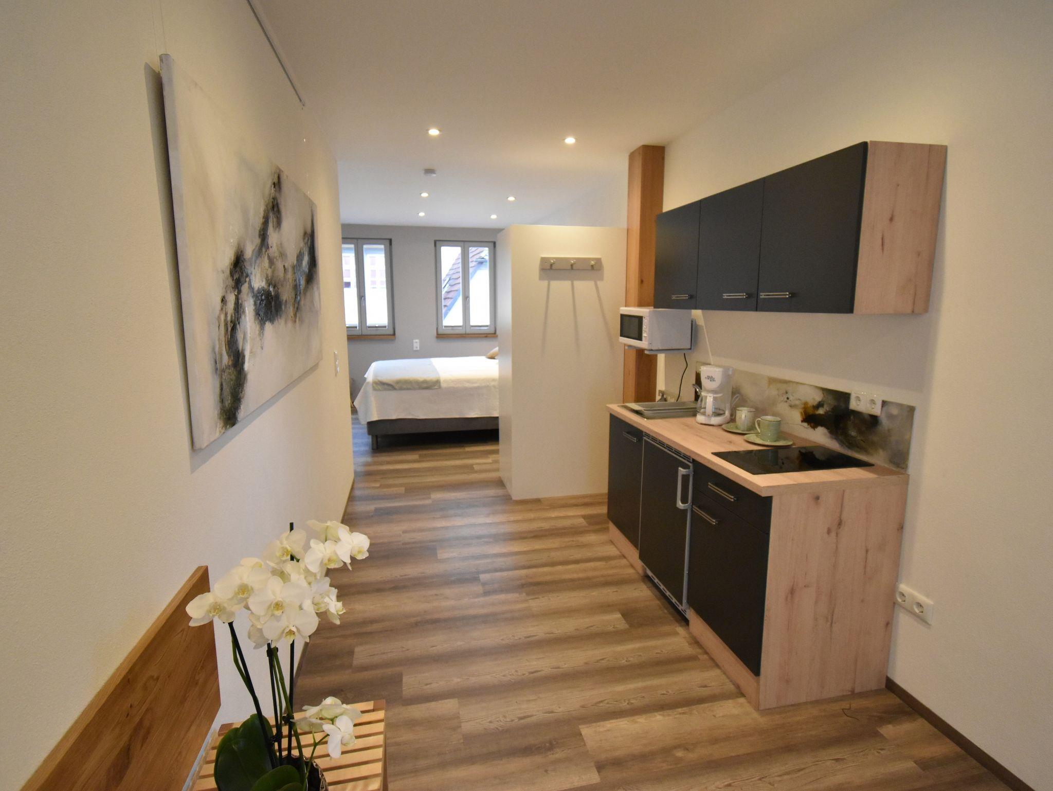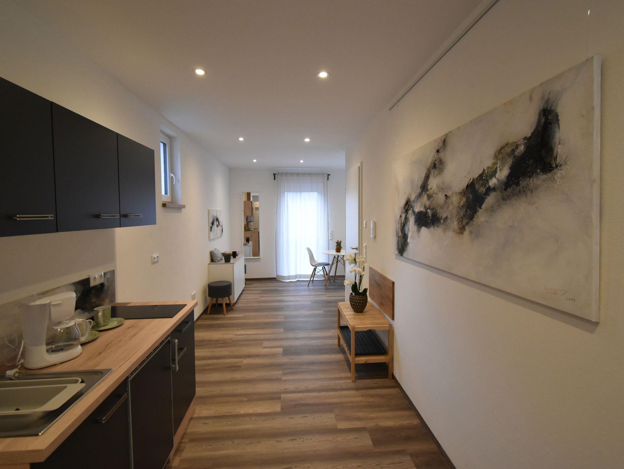 Jedes Apartment ist individuell und liebevoll eingerichtet mit Küchenzeile.