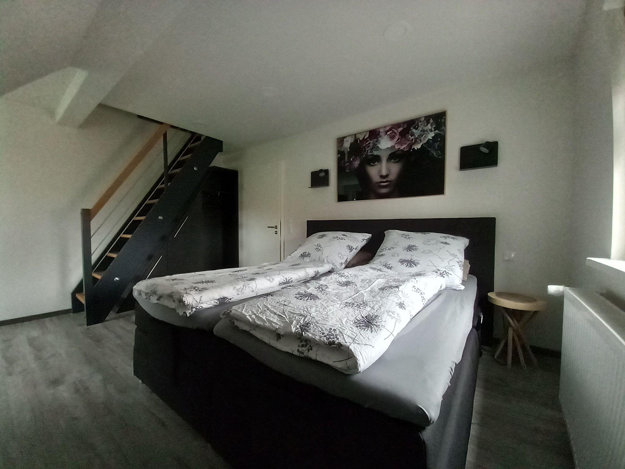 Unsere modern eingerichtete Ferienwohnung Kunterbunt mit 90 m² Wohnfläche, verfügt über zwei schöne Schlafzimmer und 2 Doppelbett-Schlafcouchen im Wohnzimmer. Und Küche und ein geräumiges Badezimmer mit großer Badewanne und Regenwalddusche. Im Schlafzimmer befinden sich Boxspringbetten. Im Wohnzimmer befindet sich ein 2.-3. Sofa.