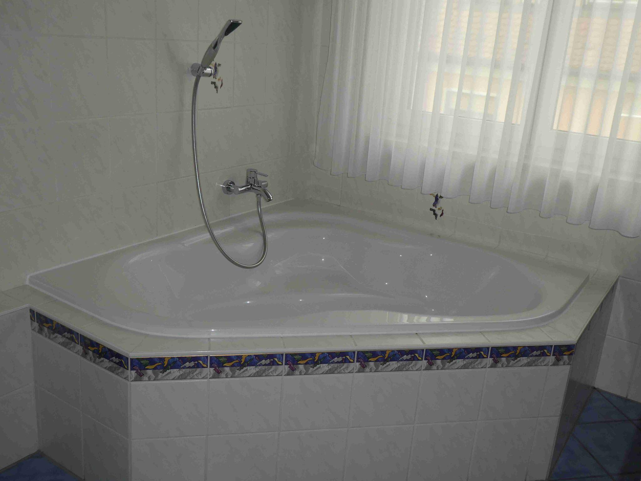 Tageslichtbad mit Dusche, Eckbadewanne, WC und Föhn separates WC