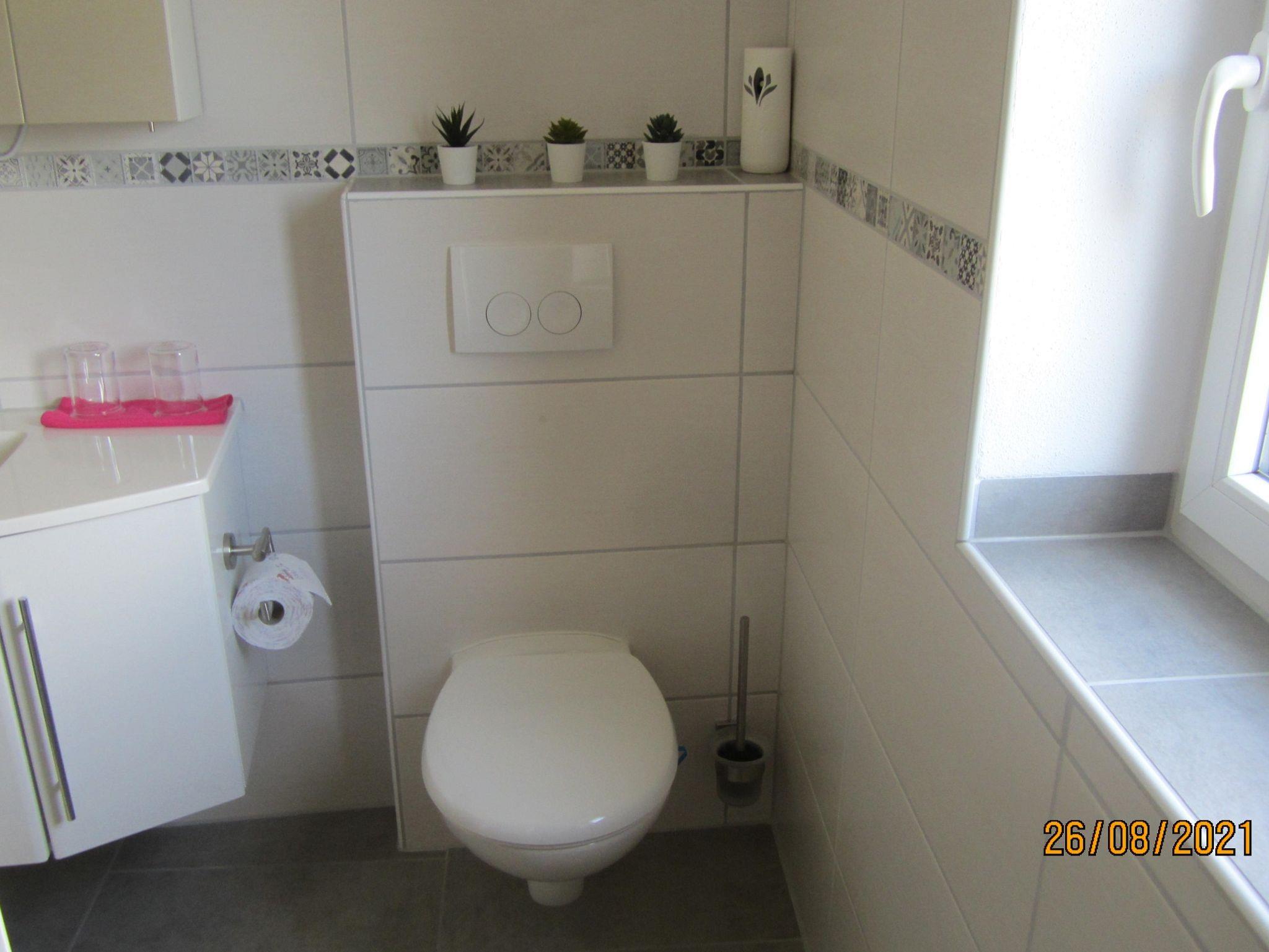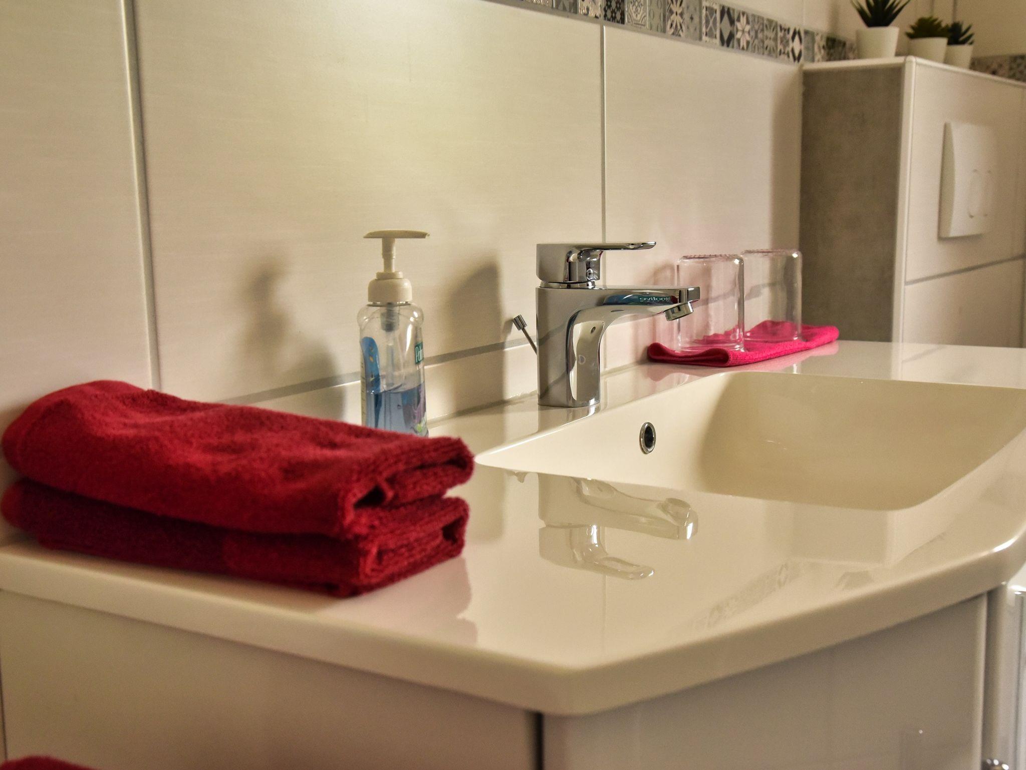 Unser Badezimmer wurde erst vor Kurzem renoviert und verfügt über eine barrierefreie Dusche.
