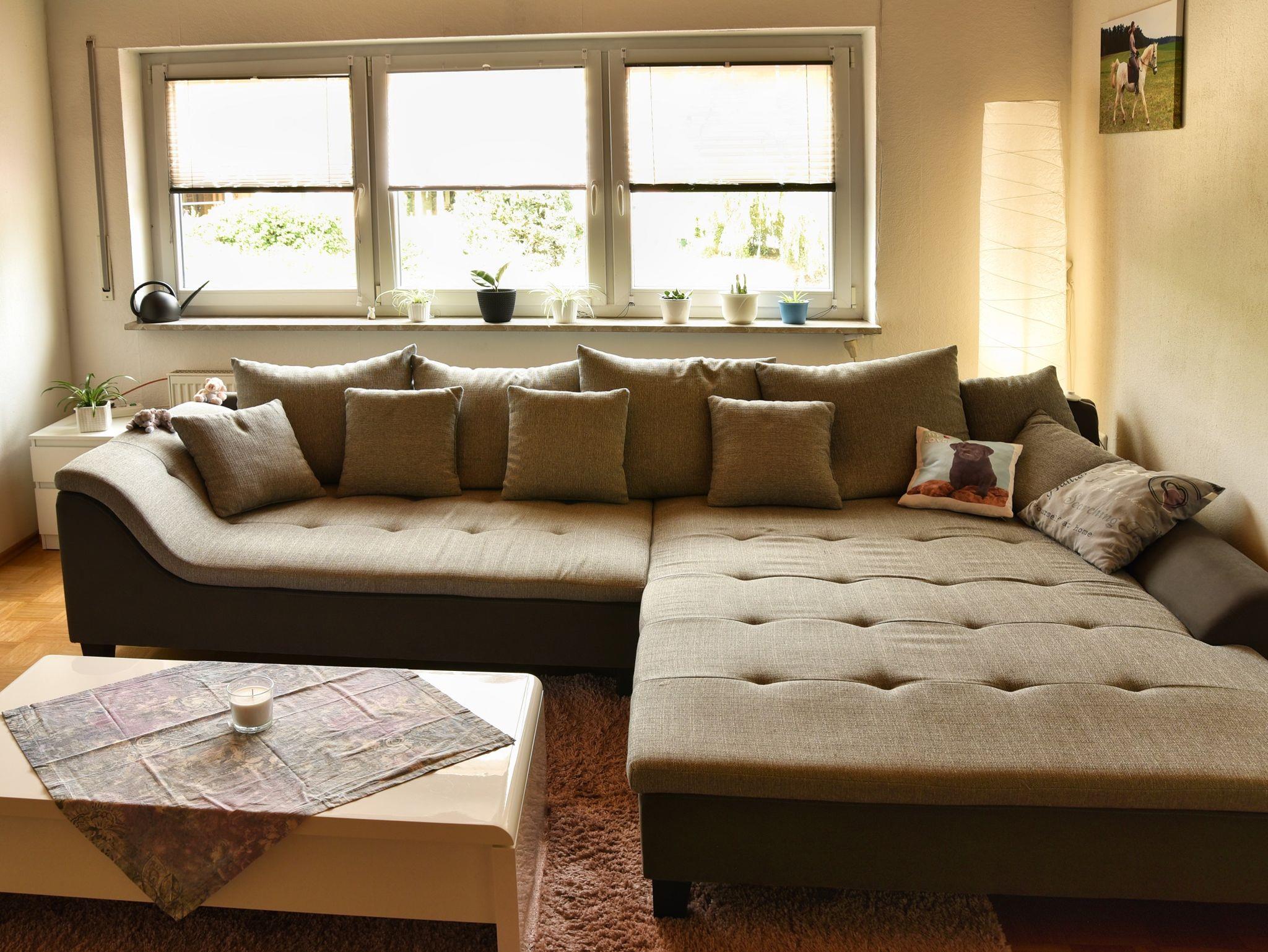 Geräumiges Wohnzimmer mit Sat-TV, Schlafsofa, höhenverstellbarer Tisch, WLAN