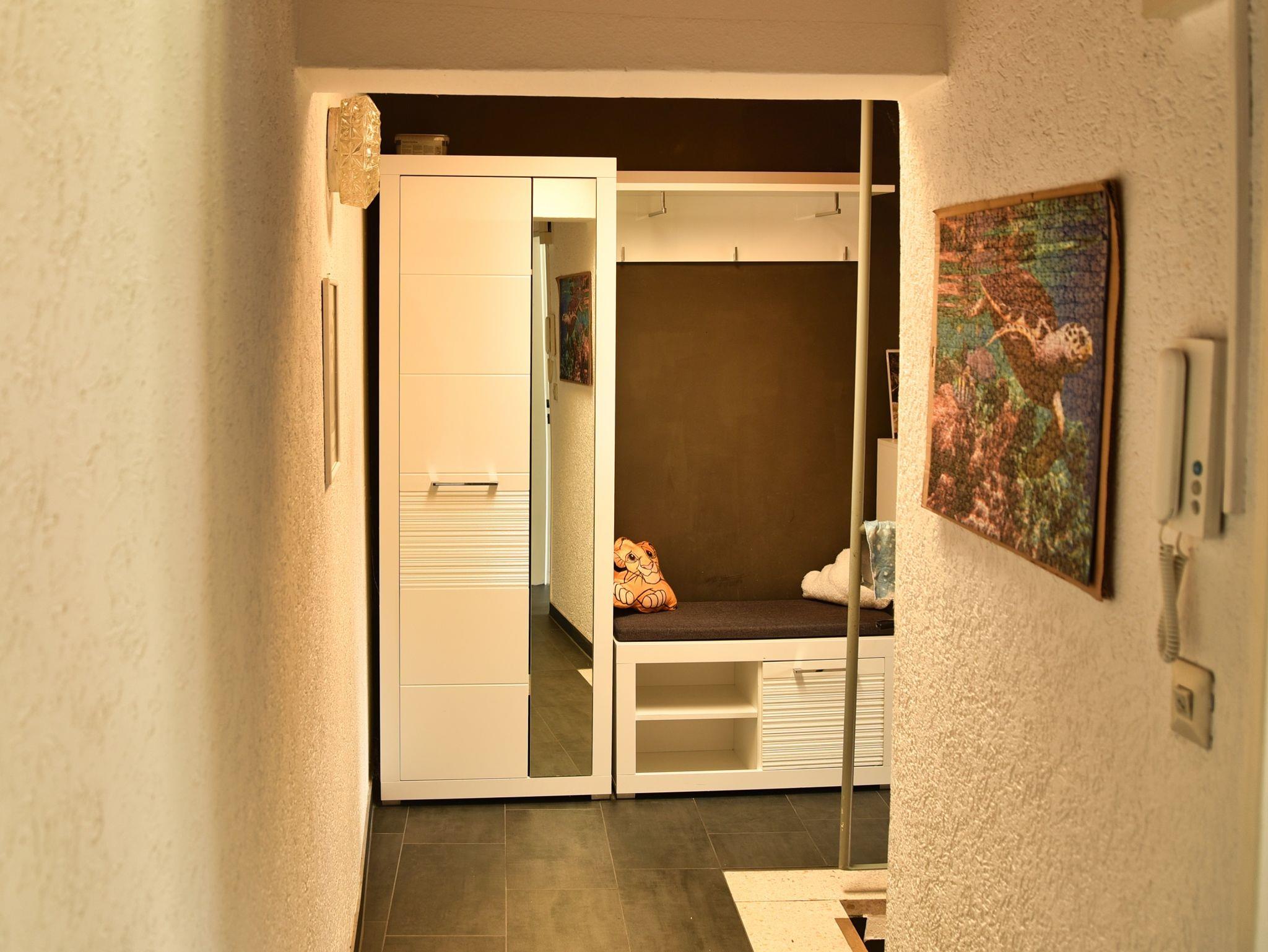Kleiner Abstellraum (z. B. zum Aufbewahren der Koffer) hinter dem Kleiderschrank.