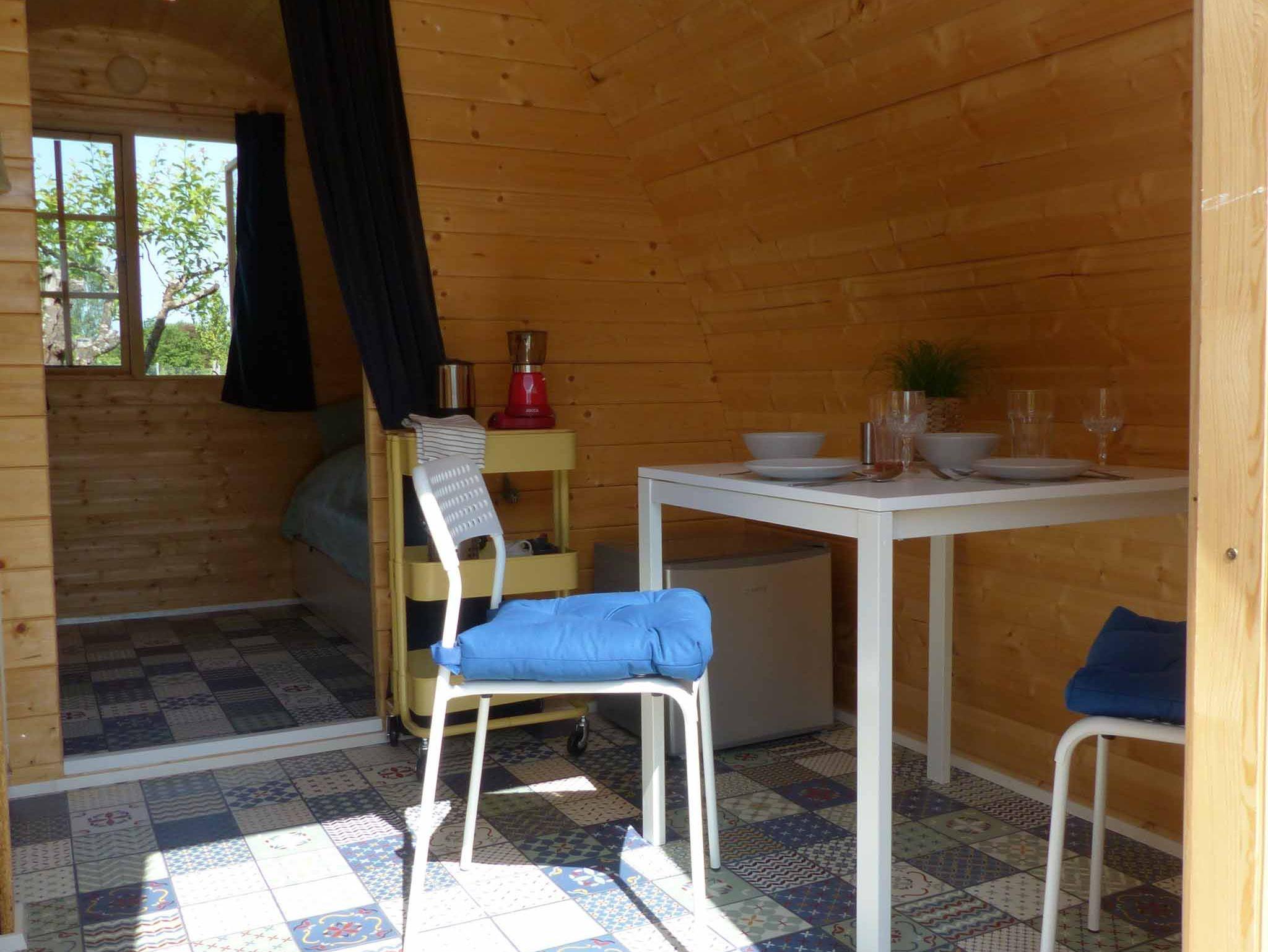 Sich selbst mit Frühstück/Brotzeit versorgen? – Unsere zwei Pods sind ausgestattet mit Kühlschrank, Espressomaschine, Wasserkocher, Geschirr uvm.