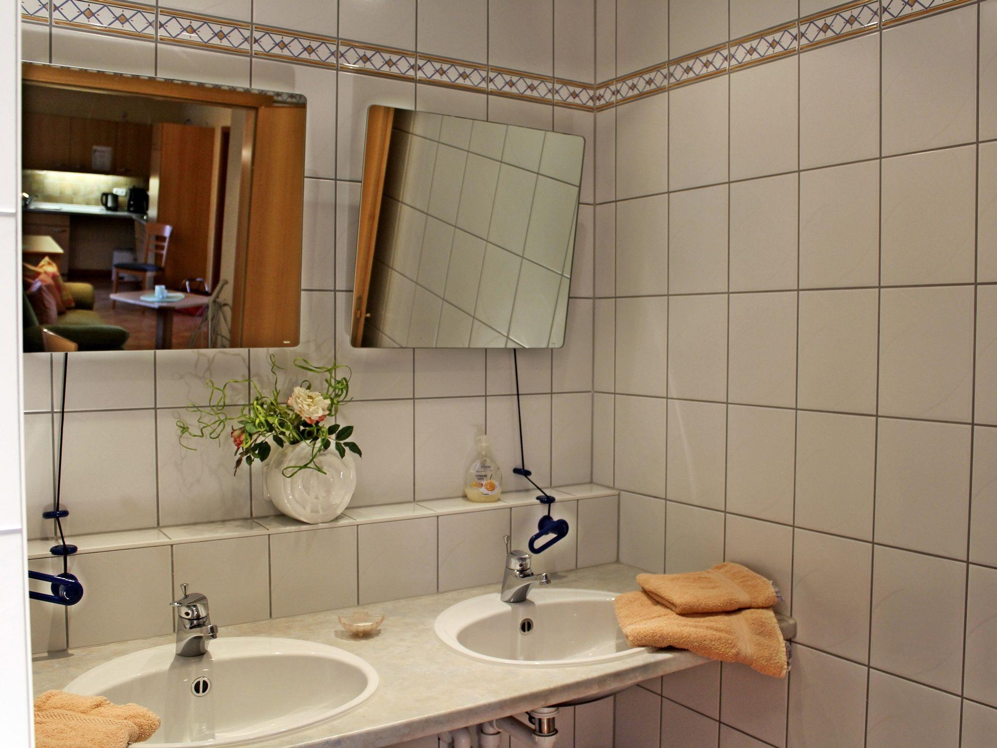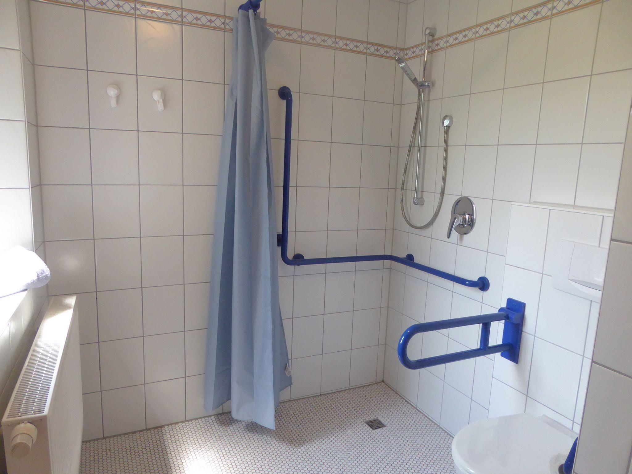 Rollstuhlgerecht, Komfortabel und gemütlich eingerichtete Ferienwohnung, komplett aus- gestattete Küche mit Geschirrspüler, Bad mit Dusche und WC, Radio-/TV-Anschluss.