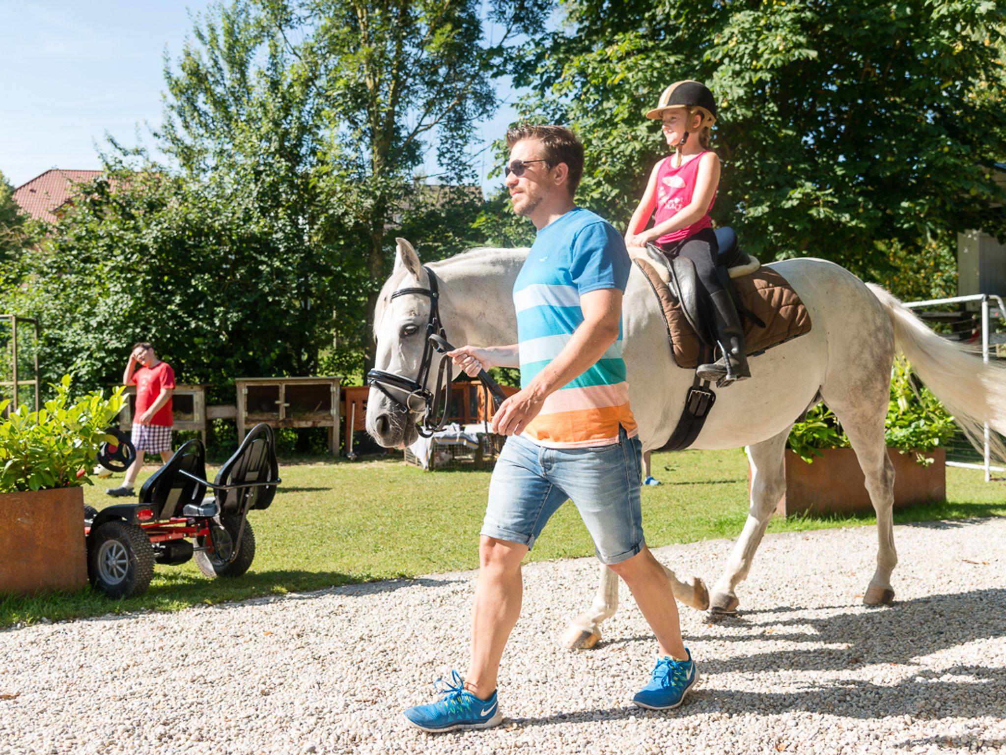Wo sich Kinder wohl fühlen, können sich Eltern erholen: Kinderspielhaus mit Matratzenlager. Ereignisreiche Traktor- und Pferdekutschenfahrten. Riesen-Salatbuffet mit bayer. Spezialitäten vom Grill. Swimmingpool, Riesentrampolin, Beachvolleyball, Fußball.