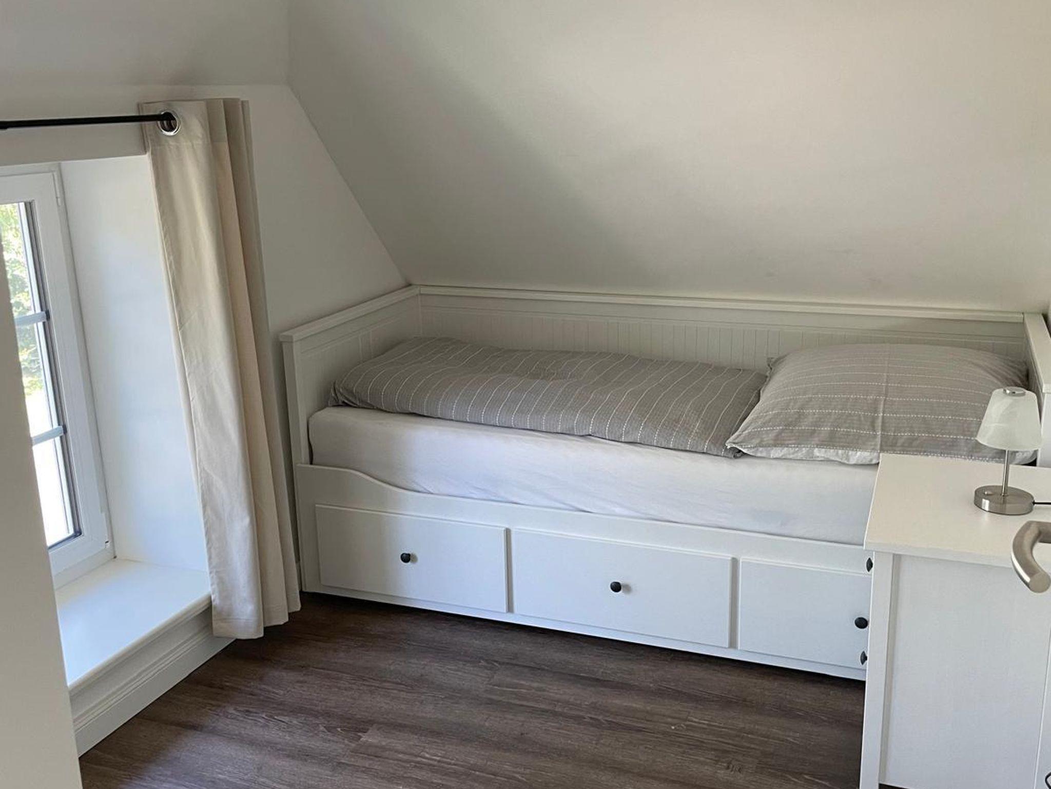 Die ca 70 m² große Wohnung in unserem frisch renoviertem Reetdachhaus ist modern und gemütlich eingerichtet. Die Wohnung beinhaltet im 1.OG 2 Schlafzimmer (1 Doppelbett, 1 ausziehbares Doppelbett), ein geräumiger Wohnbereich und ein modernes Bad. Im Erdgeschoss befinden sich ein Gäste-WC, die Küche, der Essbereich und ein direkter Zugang zum Garten, von dem Mann Abends die wunderschönen Sonnenuntergänge genießen kann.