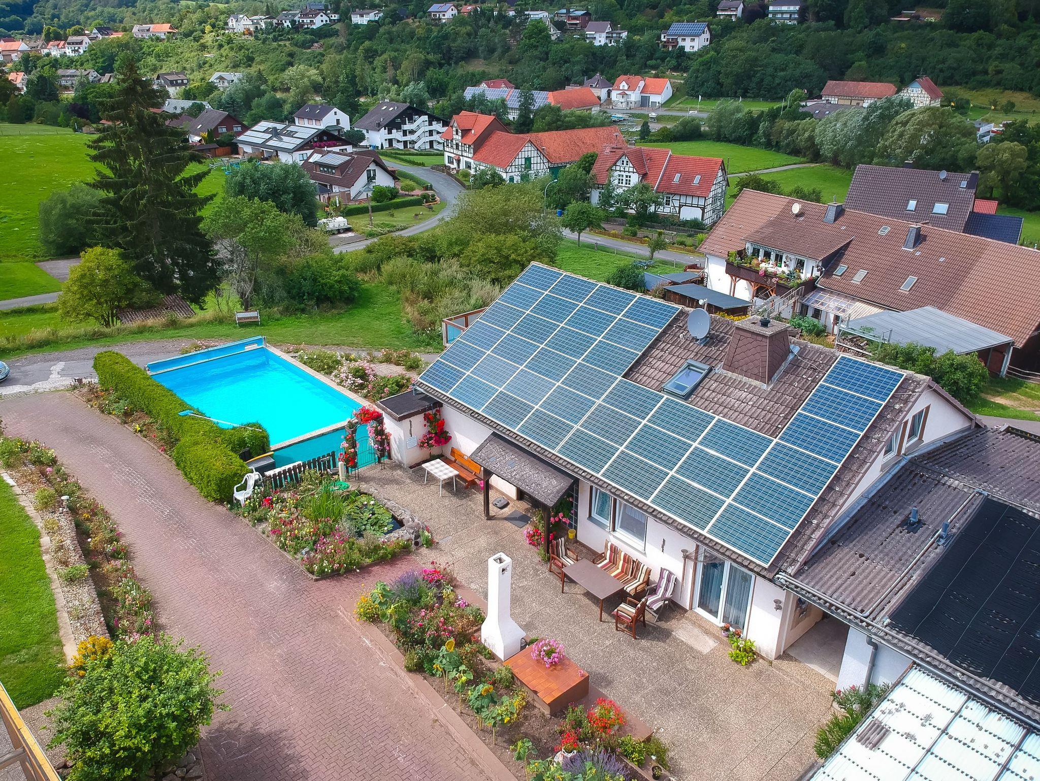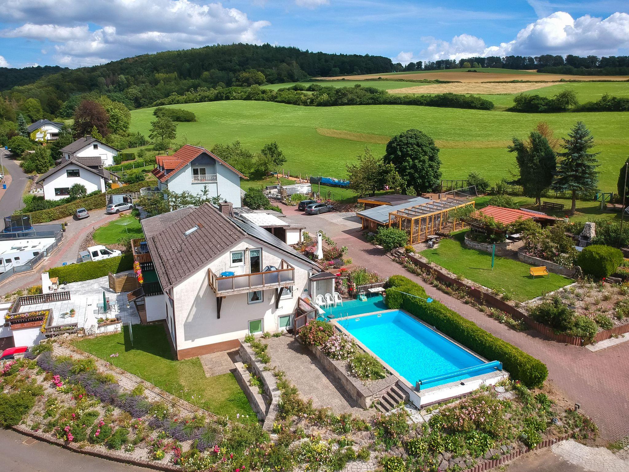 Gepflegtes kinderfreundliches Haus mit 2 komfortabel ausgestatteten Fewos. Beheizter Swimmingpool, Sonnenterrasse, Grillplatz, Spiel- und Liegewiese.