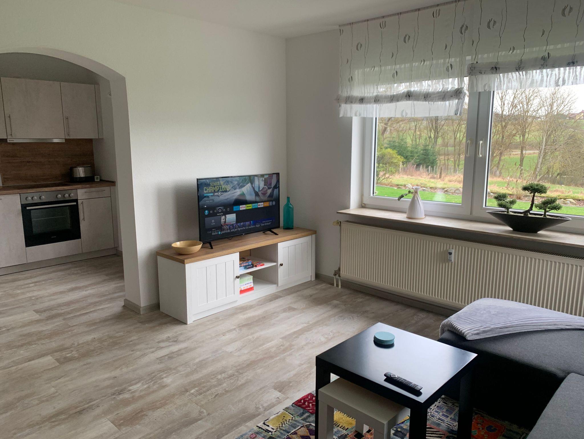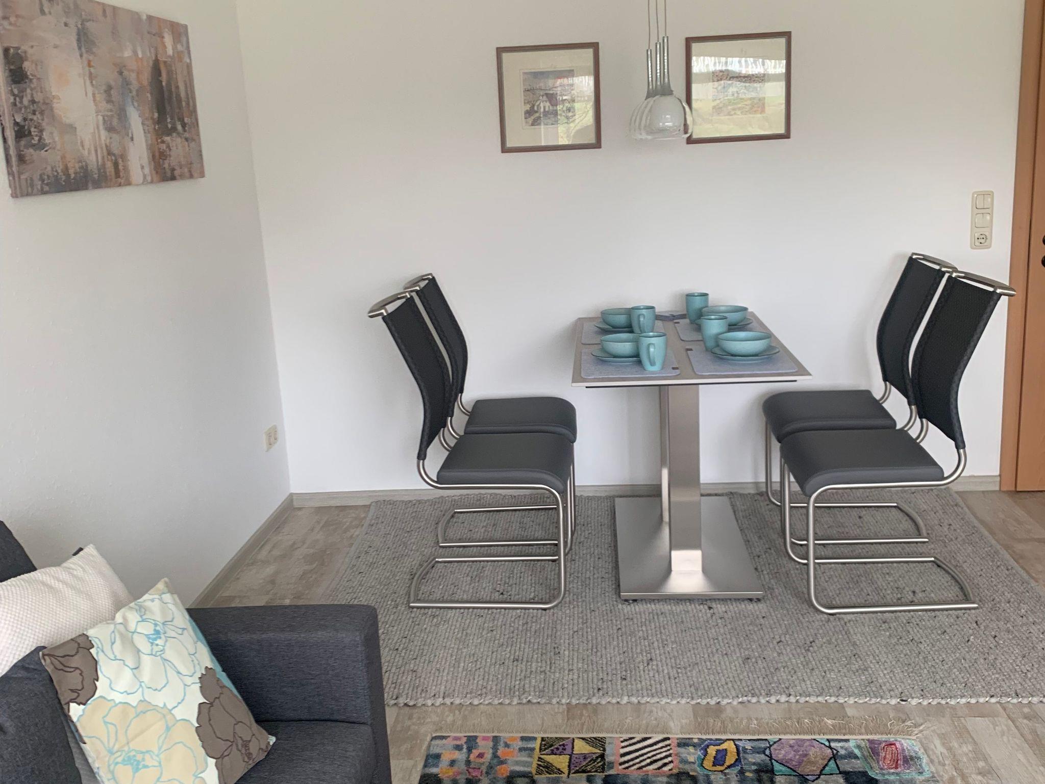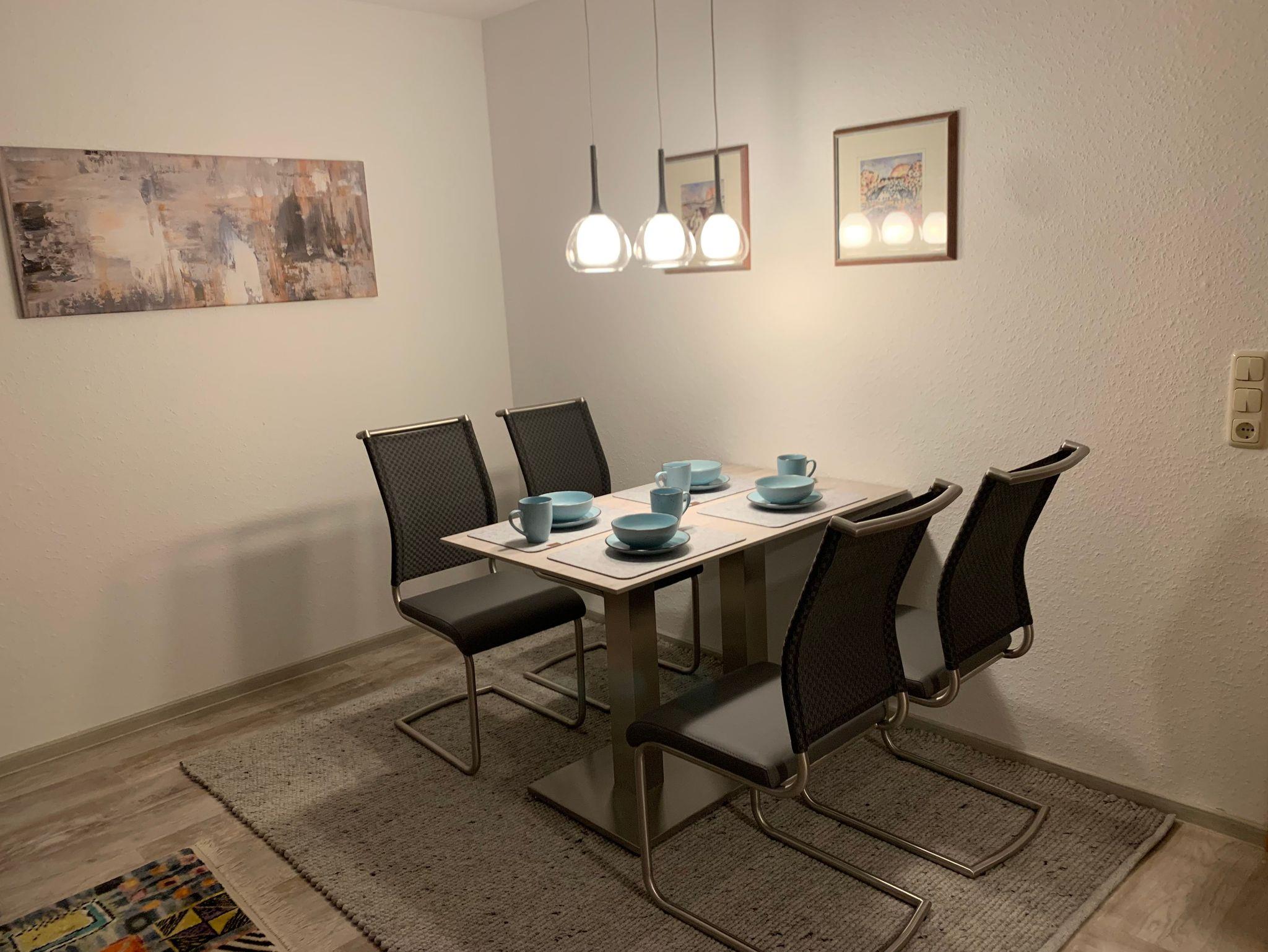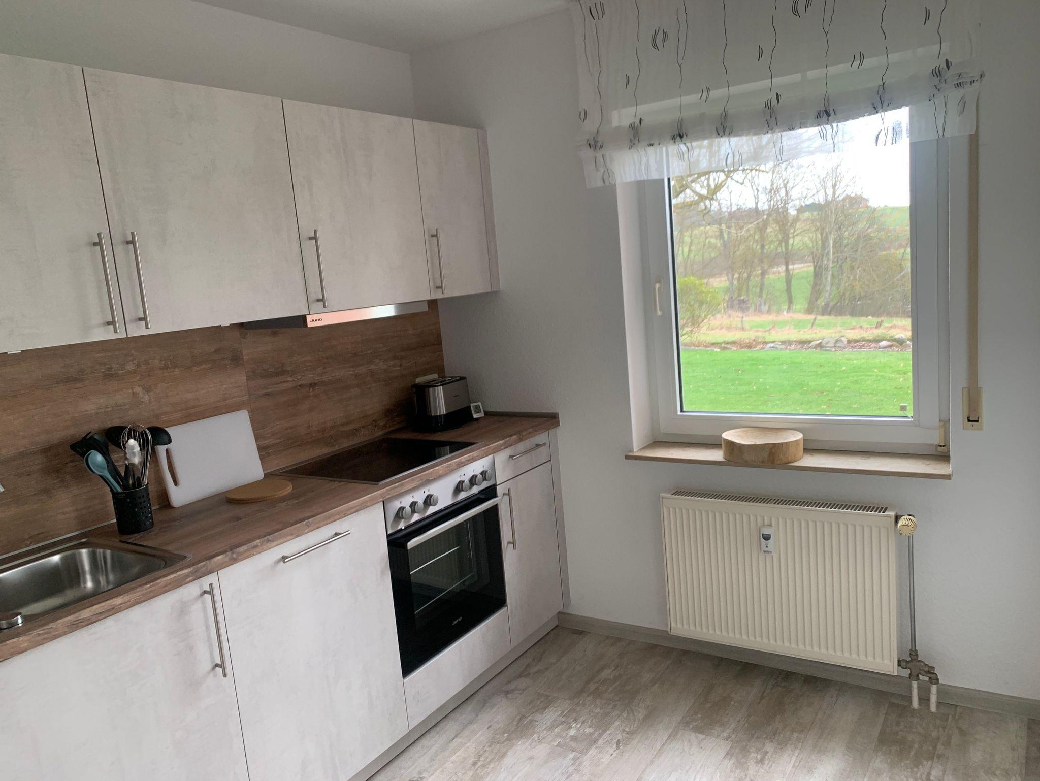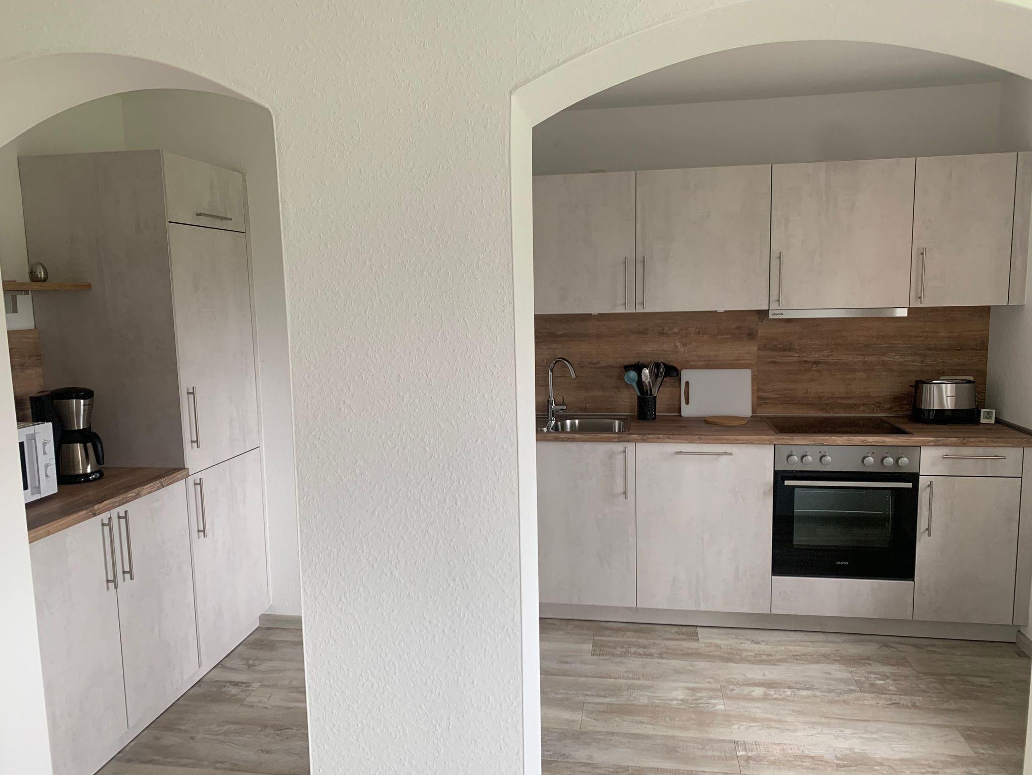 Mit 1 Schlafzimmer und einem Kinderbett für die 3. Person(für Kinder bis 2 Jahren geeignet) , 1 Wohn-/Essbereich mit Smart TV und Schlafcouch, großzügig ausgestattete neue Küche, Bad mit großer Dusche, separates WC. Bettwäsche, Handtücher und WLAN-Zugang sind inclusive. Eigene Terrasse mit Grillmöglichkeit, Fahrradabstellraum und Parkplatz vorhanden.